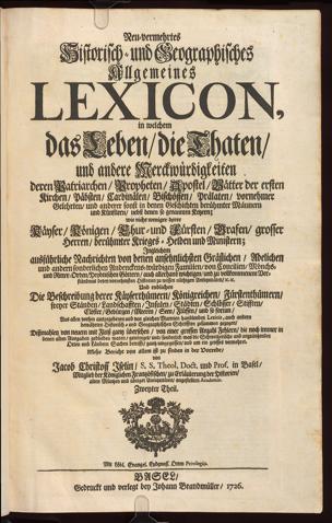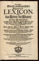 Aus allen vorhin ausgegebenen und von gleichen Materien Handlenden Lexicis-auch andernbewährten Historisch - und Geographischen Schrifften zusammen gezogen/