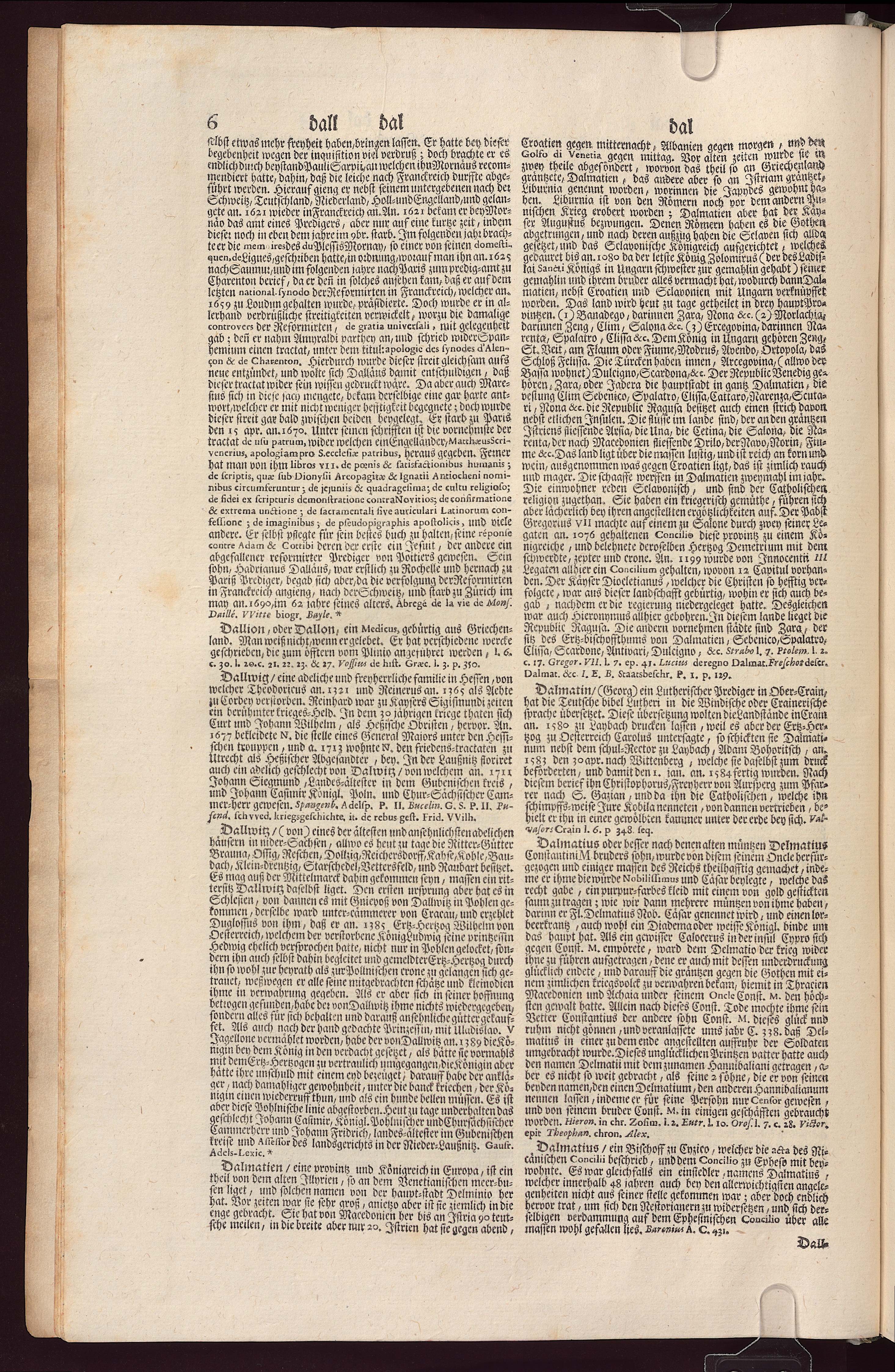 .. Dalmatien / eine vrovintz und Königreich in Europa , ist eintheil von dem alten Jllyrien, so an dem VcnctianWcn mccr-bn-sen liget, und solchen namcn von der Haupt-stadt Delminio herhat. Vor zelten war ue sehr groß, anietzo aber ist sie ziemlich in dieenge gebracht. Sie hat von Macedonicn her bis an Jstria 90 teut-sche mcilen, m die breite aber mir 20. Jstrim hat sie gegen abend,