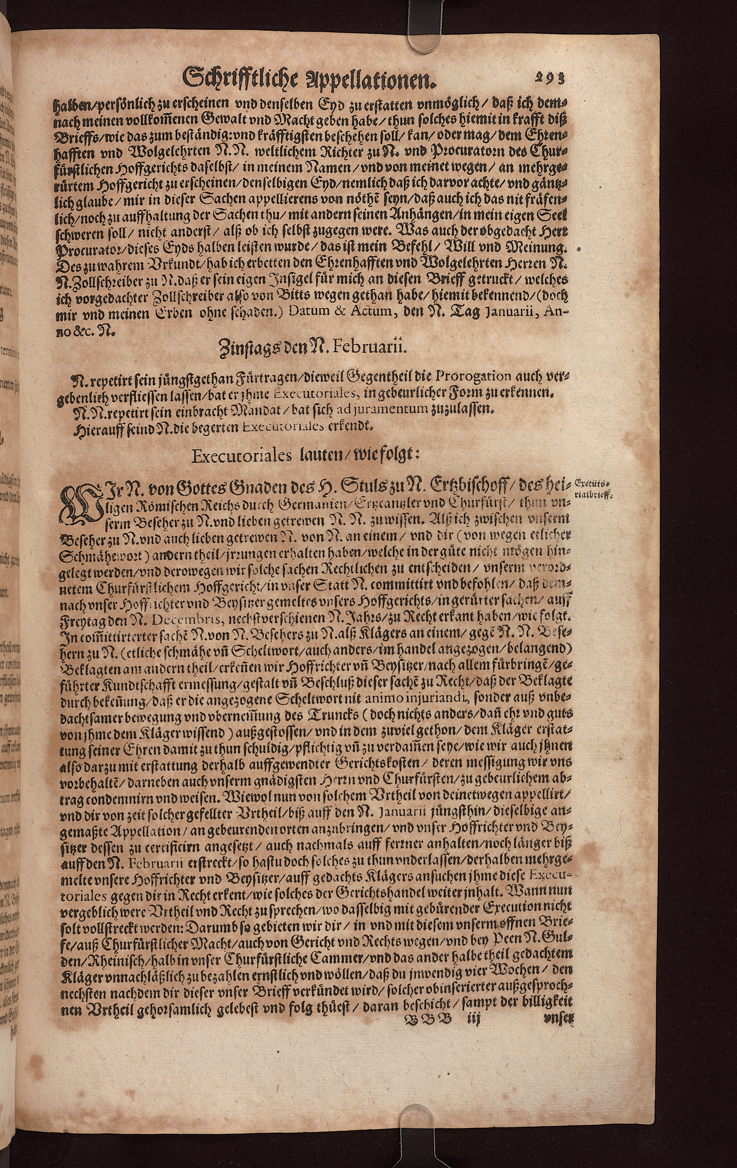 Fxecutoriales lauten/ wie folgt:G von Gottes Gnaden des H. Stuls zu N. Ertzbiſchoff/ des hei-