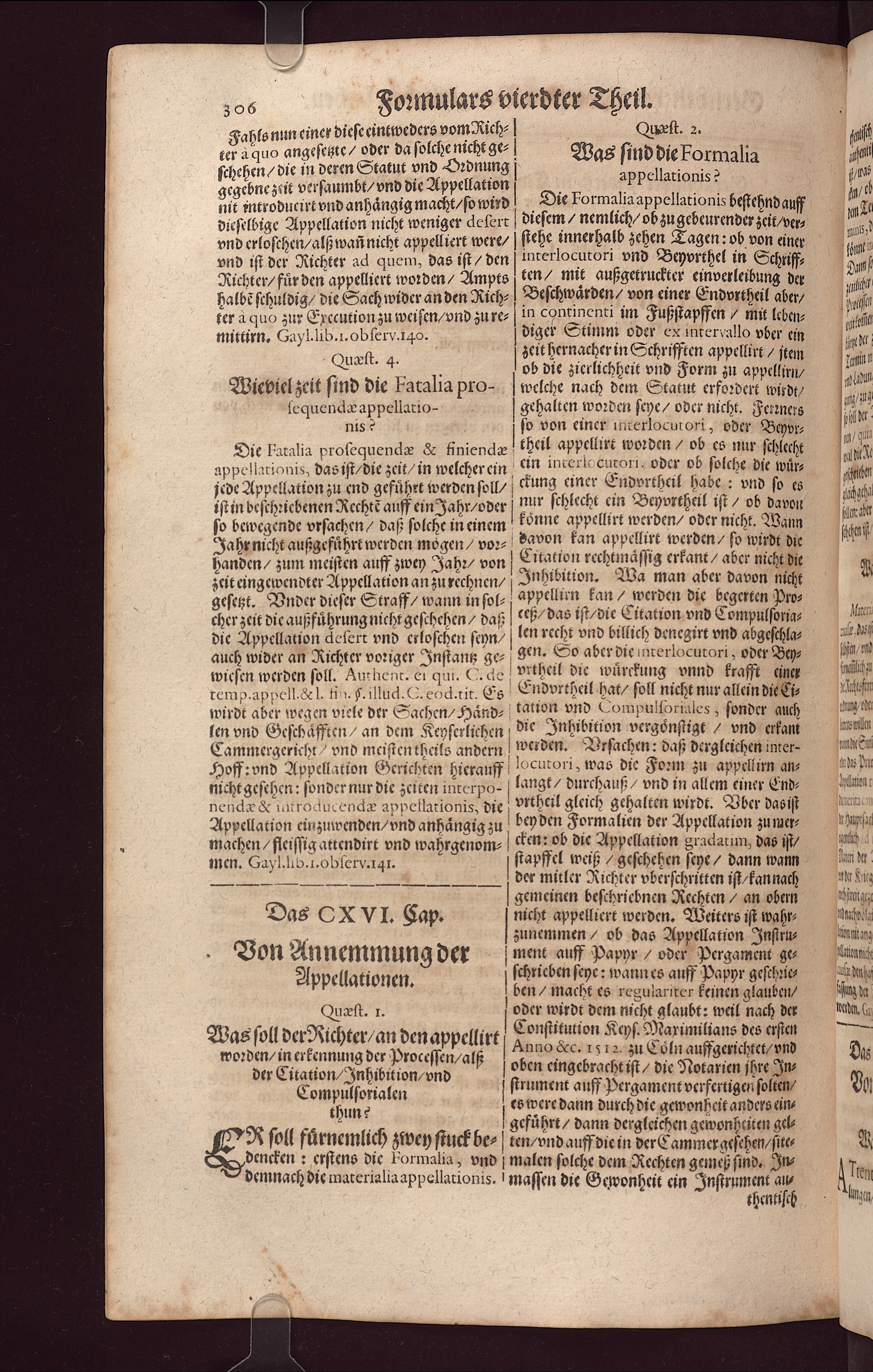 temp. appell.& l. fin. S. illud. Q. eod. tit.€].wirdt aber wegen viele der Sachen, Hands lation vnd Compulforiales, ſonder auchlen vnd Geſchäfften/ an dem Keyſerlichen die Inhibition vergoͤnſtigt, vnd erfantCammergericht/ vnd meiſten heile andern werden. Vrſachen; daß dergleichen inter-Hoff: vnd Appellation Gerichten hierauff /0Cutori, was die Form zu appellimn ansnicht geſehen: ſonder nur die zeiten inter po- langt, durchauß/ vnd in allem einer End-nendæ& iatroducendæ appellationis, die ortheil gleich gehalten wirdt. ber dasifAppellation einzuwenden/ vnd anhaͤngig zu bey den Formalien der Appellation zu mer-machen/ fleiſſig attendirt vnd wahrgenom⸗ cken; ob die Appellation gradatim, das ifmen. Gayl. lib. i. obſerv. 1q1. ſtapffel weiß/ geſchehen ſeye/ dann wann. der mitler Richter vberſchritten iſt/ kan nachgemeinen beſchriebnen Rechten/ an obernDas CX VI Cap.| nicht appelliert werden. Weiters iſt wahr