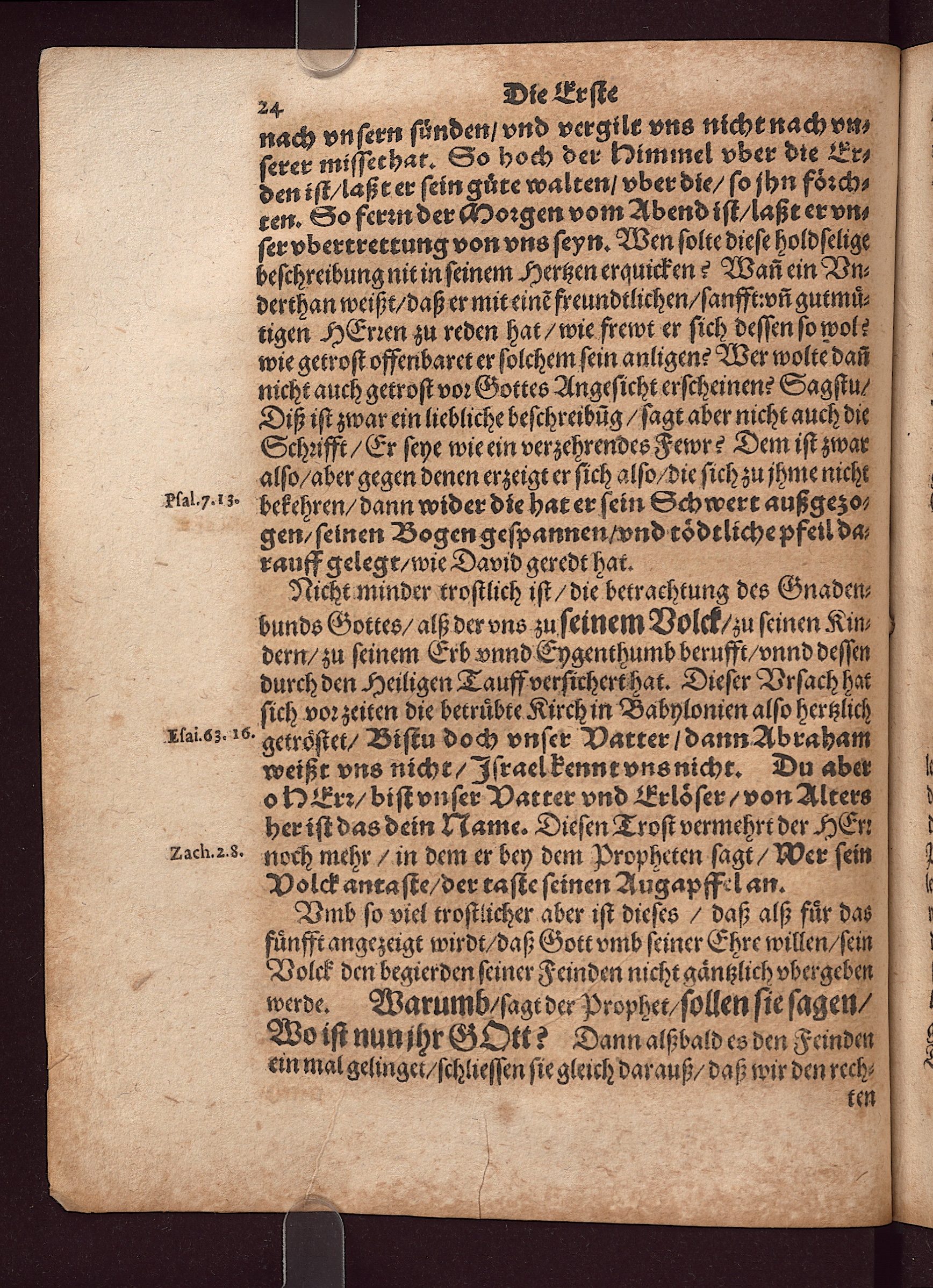 Vmb fo viel troſtlicher aber iſt dieſes/ daß alß für dasfuͤnfft angezeigt wirdt/ daß Gott vmh feiner Ehre willen feinVolck den begierden feiner Feinden nicht gaͤntzlich vbergebenwerde, Warumb. ſagt der Prophet/ ſollen fie ſagen/Wo iſt nun jhr G Ott? Dann alß hald es den Feindenein mal gelin gel /ſchlieſſen ſie gleich dar auß daß wir den rech,