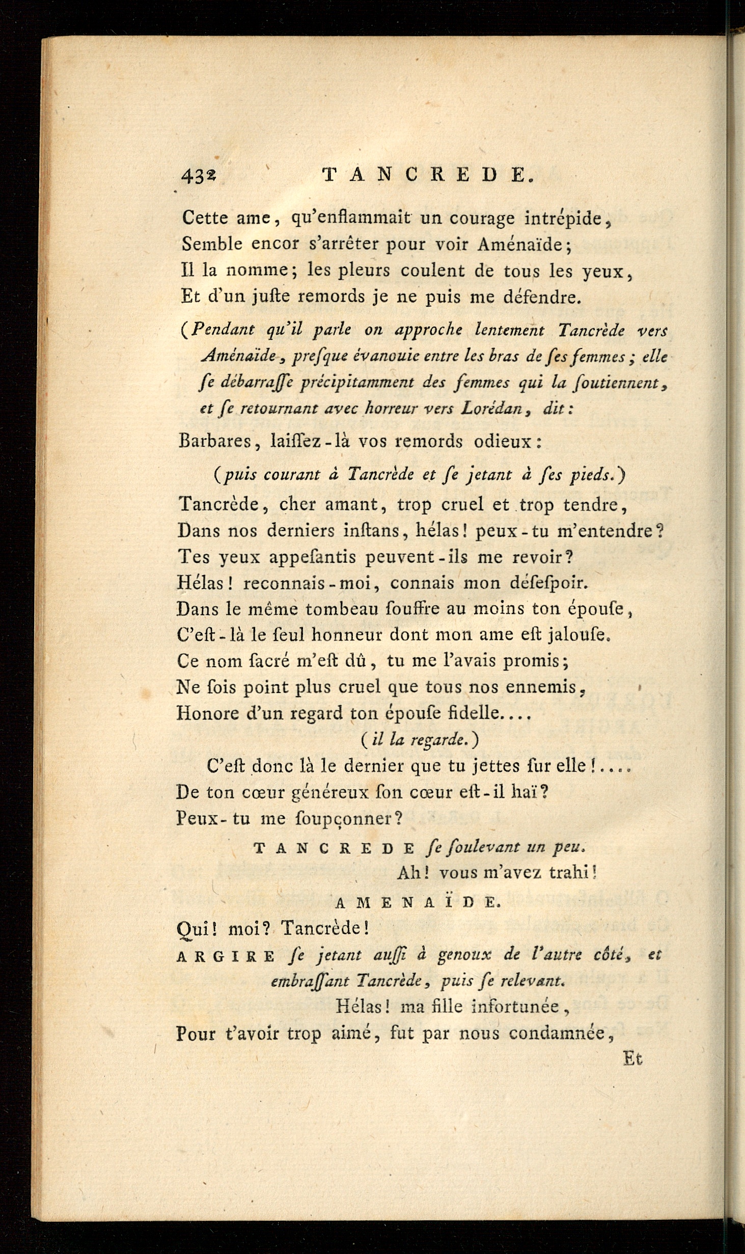 Cette ame, qu’enflammait un courage intrépide,Semble encor s’arrêter pour voir Aménaïde ;