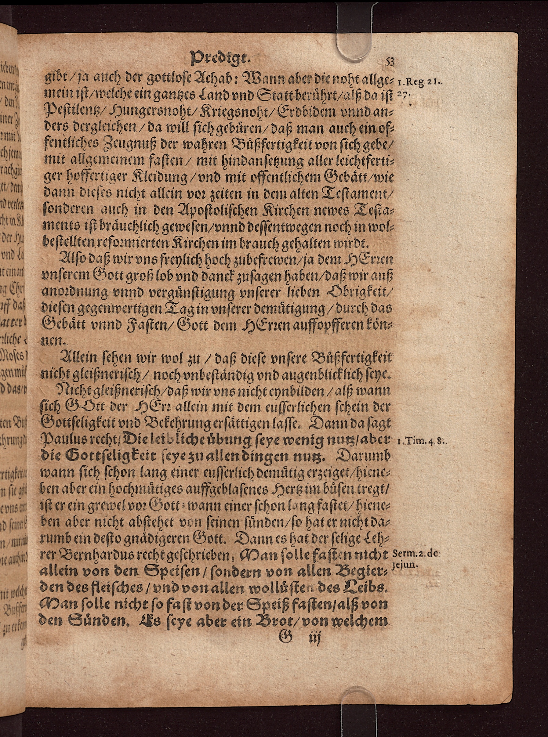 Fast- und Baettag Wie der in den 4. Pfarrkirchen zu Basel, sonderlich aber in der Pfarrkirchen des Muensters geuebet worden : Das ist: Verzeichnuss I. Des Christlichen Oberkeitlichen Mandat und ausskuendens, obgemeldten Fasttags : II. Dreyer am selbigen tag gehaltener Buosspredigen, deren Die erste durch D. Johan Wolleb, ... Die andre durch M. Theoder Zwinger, ... Die dritte durch D. Wolgang Meyer ... verrichtet worden ... : III. Des Gebaetts, so der Gemeind Gottes fuergelesen : IV. Der Capituln so zwischen den Predigten abgehoert : V. Der Gesaengen, so vor, nach, und zwischen den Predigten abgesungen worden
