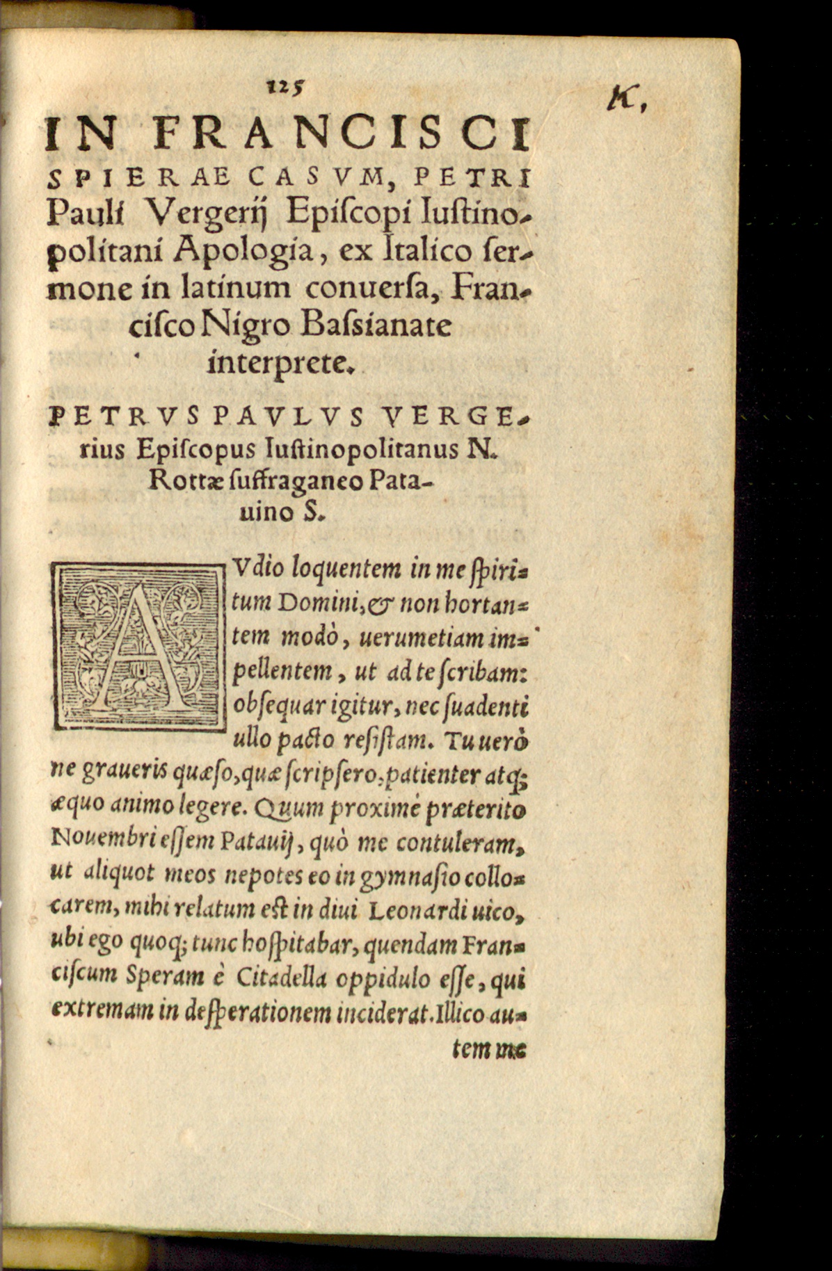 Francisci Spierae, qui quod susceptam semel Evangelicae veritatis professionem abnegasset, damnassetque, in horrendam incidit desperationem, historia, a quatuor summis viris, summa fide conscripta : cum clariss. virorum Praefationibus, Caelii S. C. & Io. Calvini, & Petri Pauli Vergerii Apologia; in quibus multa hoc tempore scitu digna gravissime tractantur. Accessit quoque Martini Borrhai, de usu, quem Spierae tum exemplum, tum doctrina afferat, iudicium