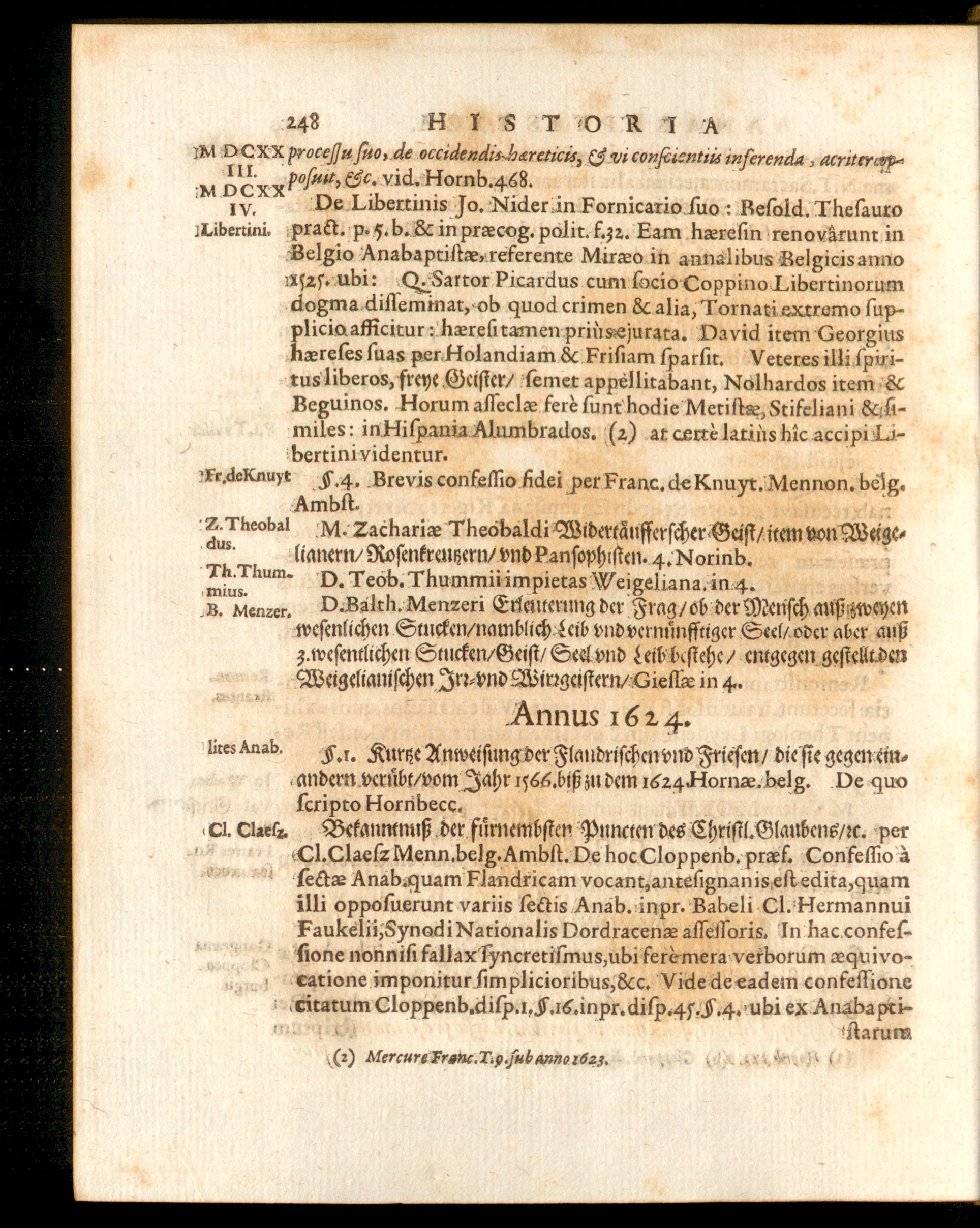 Annales anabaptistici hoc est, Historia universalis de anabaptistarum origine, progressu, factionibus & schismatis, paradoxis, tumultibus, colloquiis, pacificationibus, locis & sedibus, scriptis hinc illinc emissis, edictis & iudiciis, ac quicquid praeterea ad rem facere videtur : His praemissa prolegomena 1. Ad lectorem. 2. de variis Anabaptistarum sectis tractatio duplex. 3. collatio cum veteribus haereticis. 4. de Donatistis. 5. quomodo tractandi eiusmodi homines : una cum indice copioso / Adornata a Ioh. Henrico Ottio Tigurino