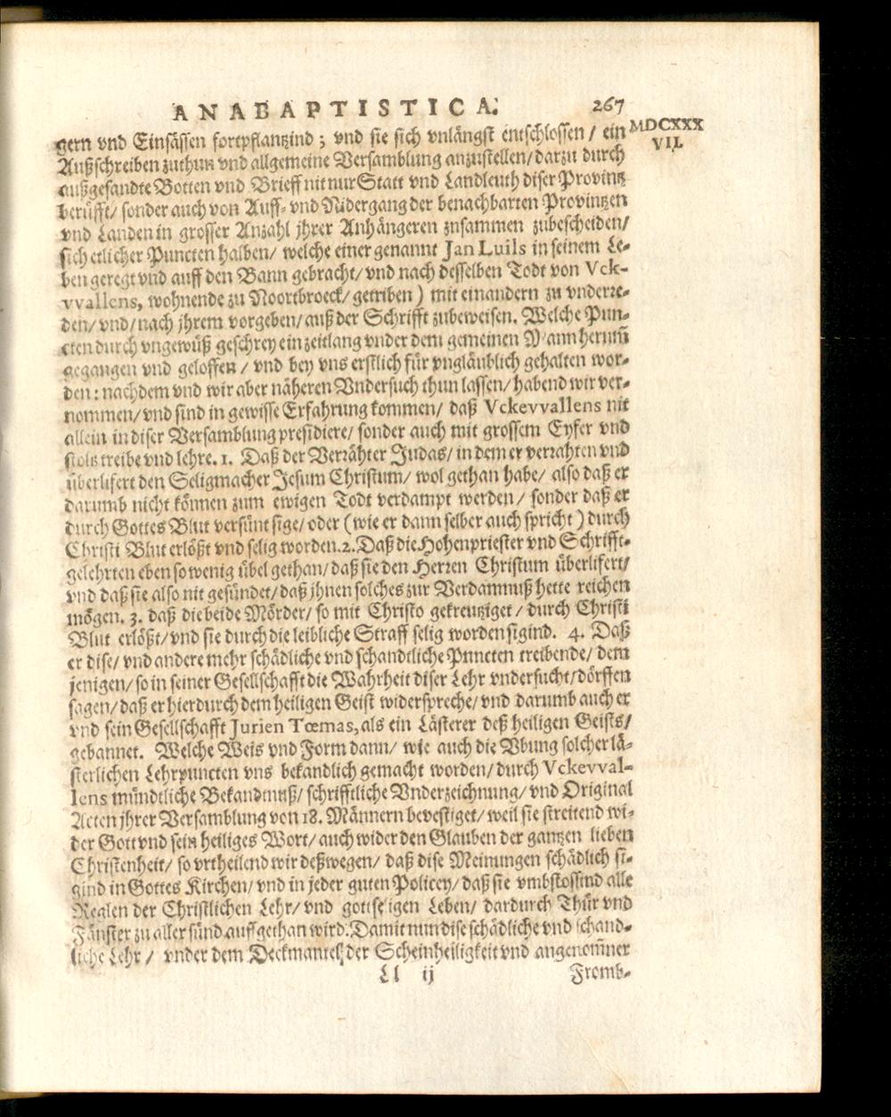 Annales anabaptistici hoc est, Historia universalis de anabaptistarum origine, progressu, factionibus & schismatis, paradoxis, tumultibus, colloquiis, pacificationibus, locis & sedibus, scriptis hinc illinc emissis, edictis & iudiciis, ac quicquid praeterea ad rem facere videtur : His praemissa prolegomena 1. Ad lectorem. 2. de variis Anabaptistarum sectis tractatio duplex. 3. collatio cum veteribus haereticis. 4. de Donatistis. 5. quomodo tractandi eiusmodi homines : una cum indice copioso / Adornata a Ioh. Henrico Ottio Tigurino