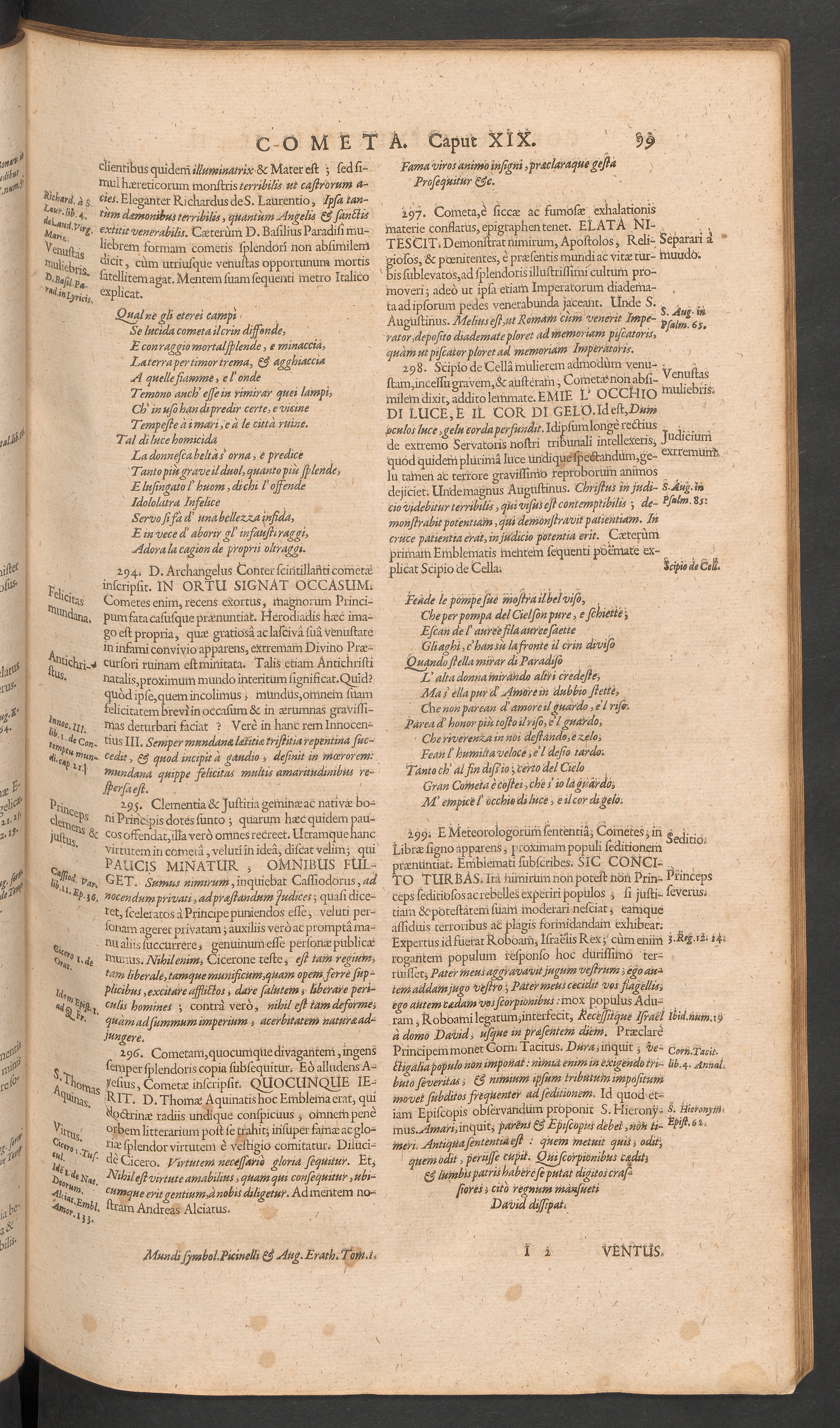 Mundus Symbolicus, in emblematum universitate formatus, explicatus, et tam sacris, quam profanis eruditionibus ac sententiis illustratus / subministrans oratoribus, praedicatoribus, academicis, poetis &c. innumera conceptuum argumenta idiomate Italico conscriptus a ... Philippo Picinello. Nunc vero iusto volumine auctus & in Latinum traductus a ... Augustino Erath