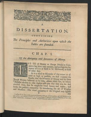 As it is usual in discourses of this nature to as-cend as high as possible, we shall acquaint theReader that the Inventor of Money was by someJe'wijh Writers believed to be Cain, Adam's eldest son, to whom* J°fiphus ascribes it: this Author tells you that Cain was the firstmonied man, that he taught his band luxury and rapine; andbroke the publick tranquility by introducing the use of Weightsand Measures. (The word %pyificLTOL in the Original may signify