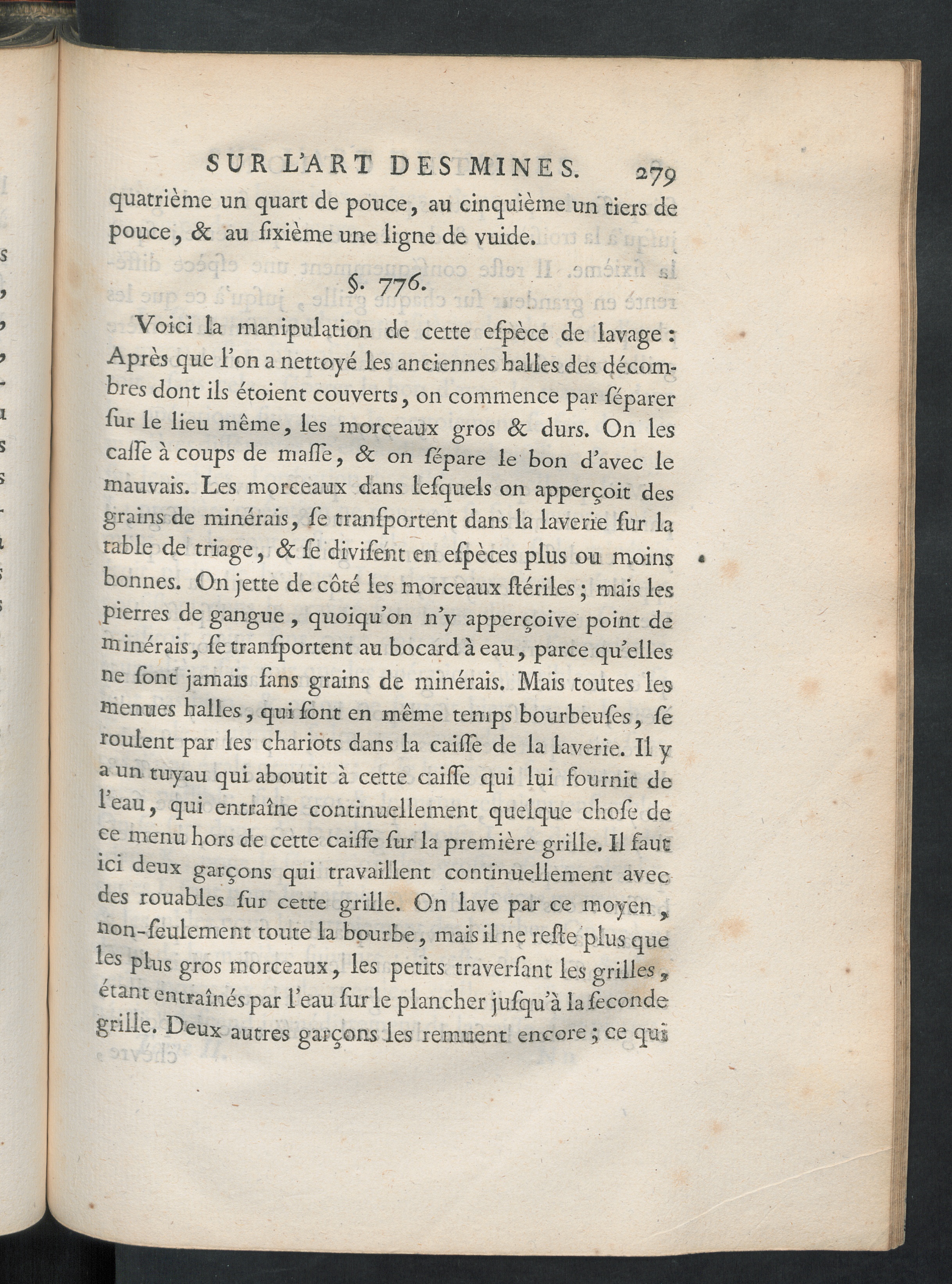 SUR L’ART DES MINES. 279quatrième un quart de pouce, au cinquième un tiers depouce , St au lixième une ligne de vuide.