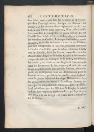 a88 INSTRUCTIONdans le bon ordre, tant dans les fonctions 8c opérationsque dans l’ouvrage même. Lorfque les officiers , lesemployés 8c les ouvriers d’une exploitation ne fe con-duifent que fuivant leurs caprices, il en réfulte millefautes nuifibles à l’entreprife ; ce qu’on prévient par unConfeil bien établi. C’eft-là où l’on affigne à chacundes membres du Confeil, le foin particulier d’une mani-pulation , & de fon économie : aucun de ces Chefs nepeut rien entreprendre ni rien changer dans fa partie quele Confoilffiait décidé, après de mûres réflexions. Iifaut,tous les famedis, faire des féances auxquelles tous lesOfficiers font obligés de fo rendre. On doit y faire rendrecompte de tous les ouvrages de la Mine, des bocardsdes laveries, des fonderies, des forges ou martinets, del’état de l’économie 8c des comptes, 8c enfin de toutce qui a été fait dans le courant de la fomaine, afin qu’onpuifle en conféquence faire les délibérations pour lafomaine fùivante, par lefquelles on détermine les fonc-tions de chaque Officier & Employé. Mais, comme dansles exploitations des Mines il fo préfonte fouvent descas imprévus auxquels il faut remédier le plutôt poflible, 'il efl: néceffiaire que les Officiers 8c Employés faffontauflî-tôt leur rapport au fùpérieur de ce qui fo préfonte,afin que, fi le cas l’exige , on puifle faire le néceffiairefur le champ.