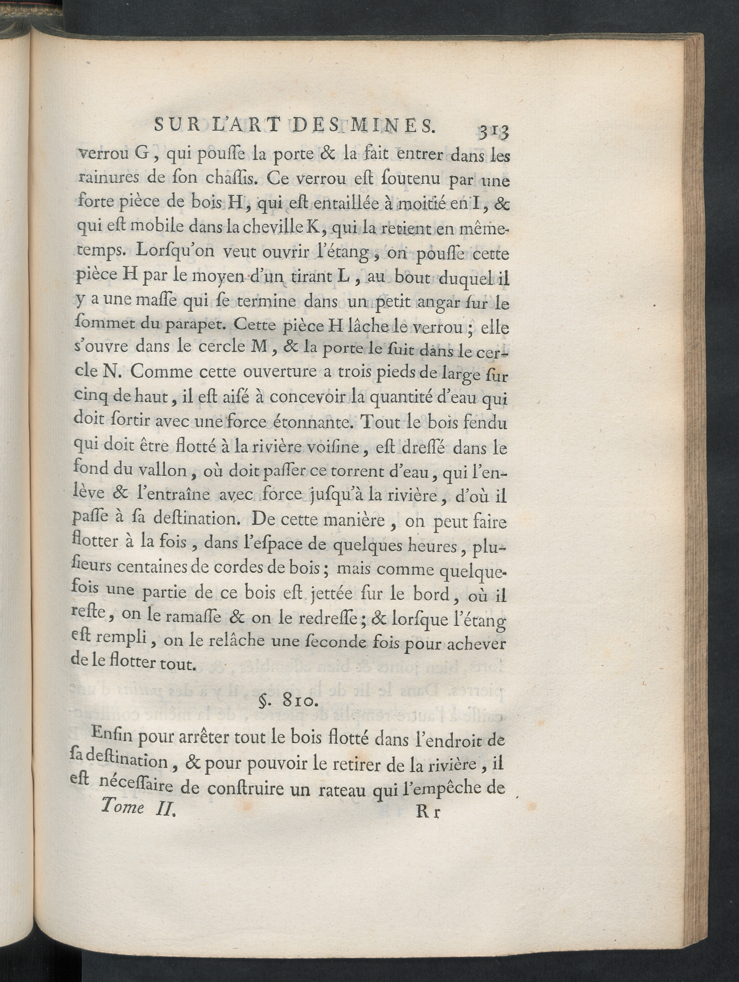 Enfin pour arrêter tout le bois flotté dans l’endroit defa defti nat j on ^ ^ p 0ur pouvoir le retirer de la rivière, ileft neceffaire de conftruire un rateau qui l’empêche deTome II. R r