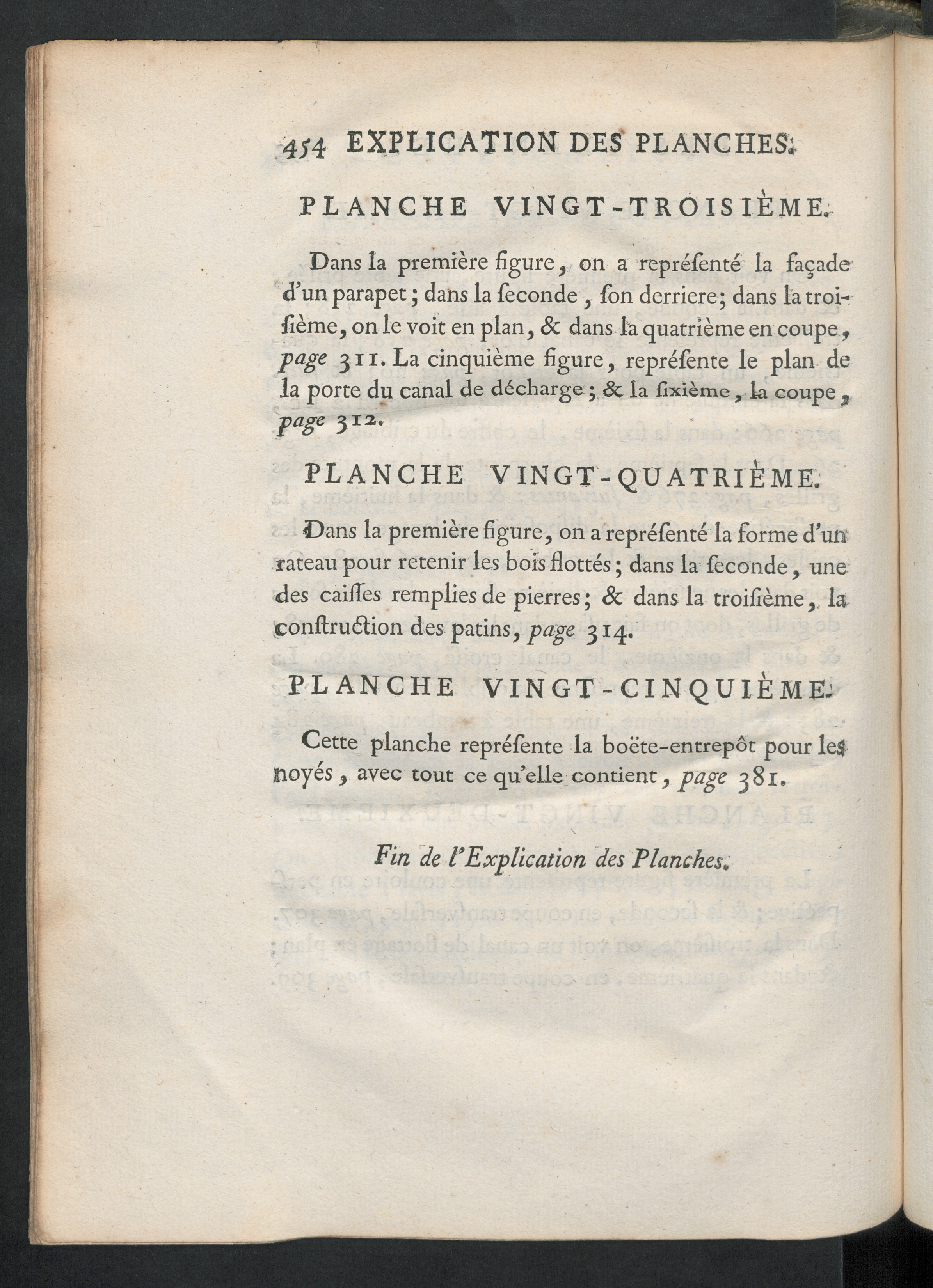 Dans la première figure, on a repréfenté la façaded’un parapet ; dans la fécondé , fon derrière; dans latroi-fième, on le voit en plan, 8 c dans la quatrième en coupe ,page 3il. La cinquième figure, repréfènte le plan dela porte du canal de décharge ; «3c la fixlème , la coupe ,page 3x2.