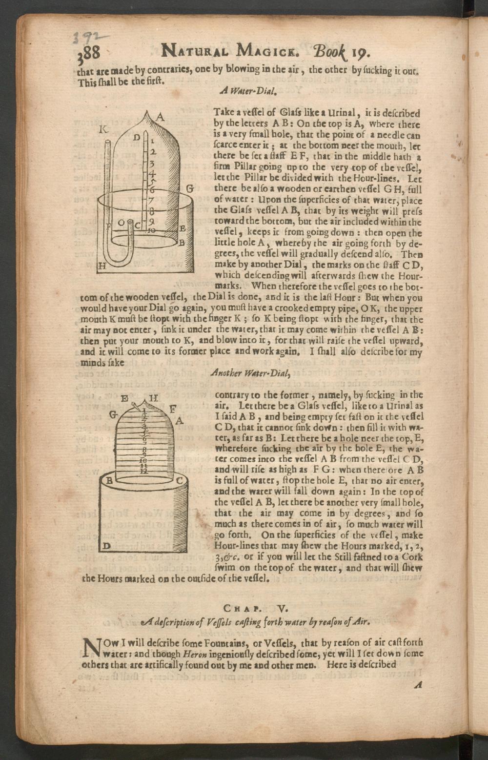 N OW I will describe some Fountains, or Vessels, that by reason of air castforthwater: and though Heron ingeniously described some, yet will I set down someother* that are artifically found out by me and other men. Here is described