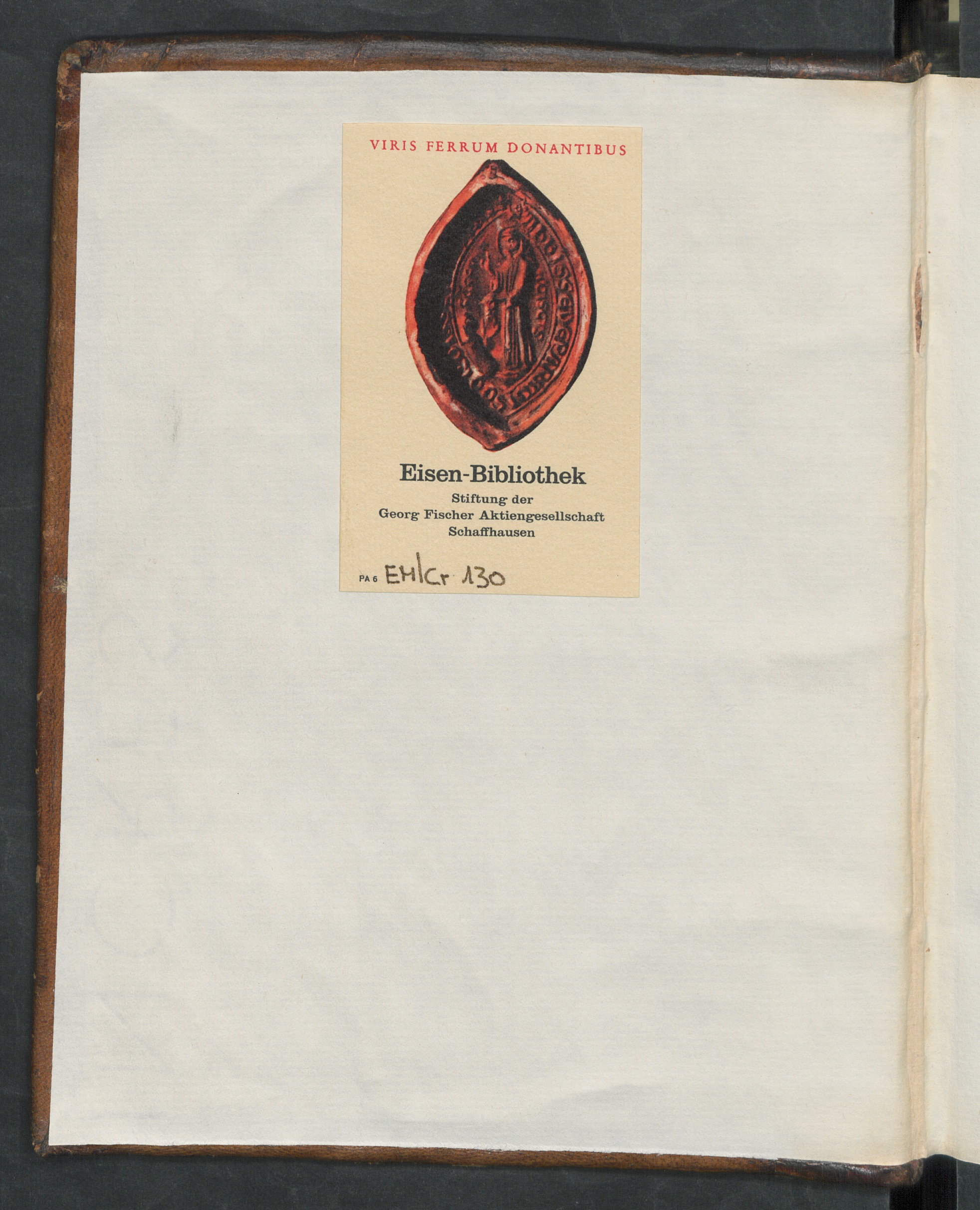 VIRIS FERRUM DONANTIBUSEisen-BibliothekStiftungr derGeorg" Fischer AktiengesellschastSchaffhausenpas £Vl\cr A3>0