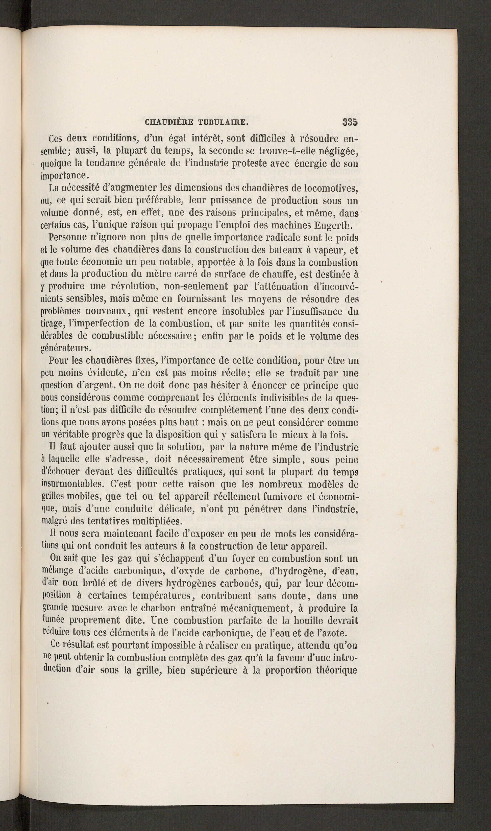 La nécessité d’augmenter les dimensions des chaudières de locomotives,ou, ce qui serait bien préférable, leur puissance de production sous unvolume donné, est, en effet, une des raisons principales, et même, danscertains cas, l’unique raison qui propage l’emploi des machines Engerth.
