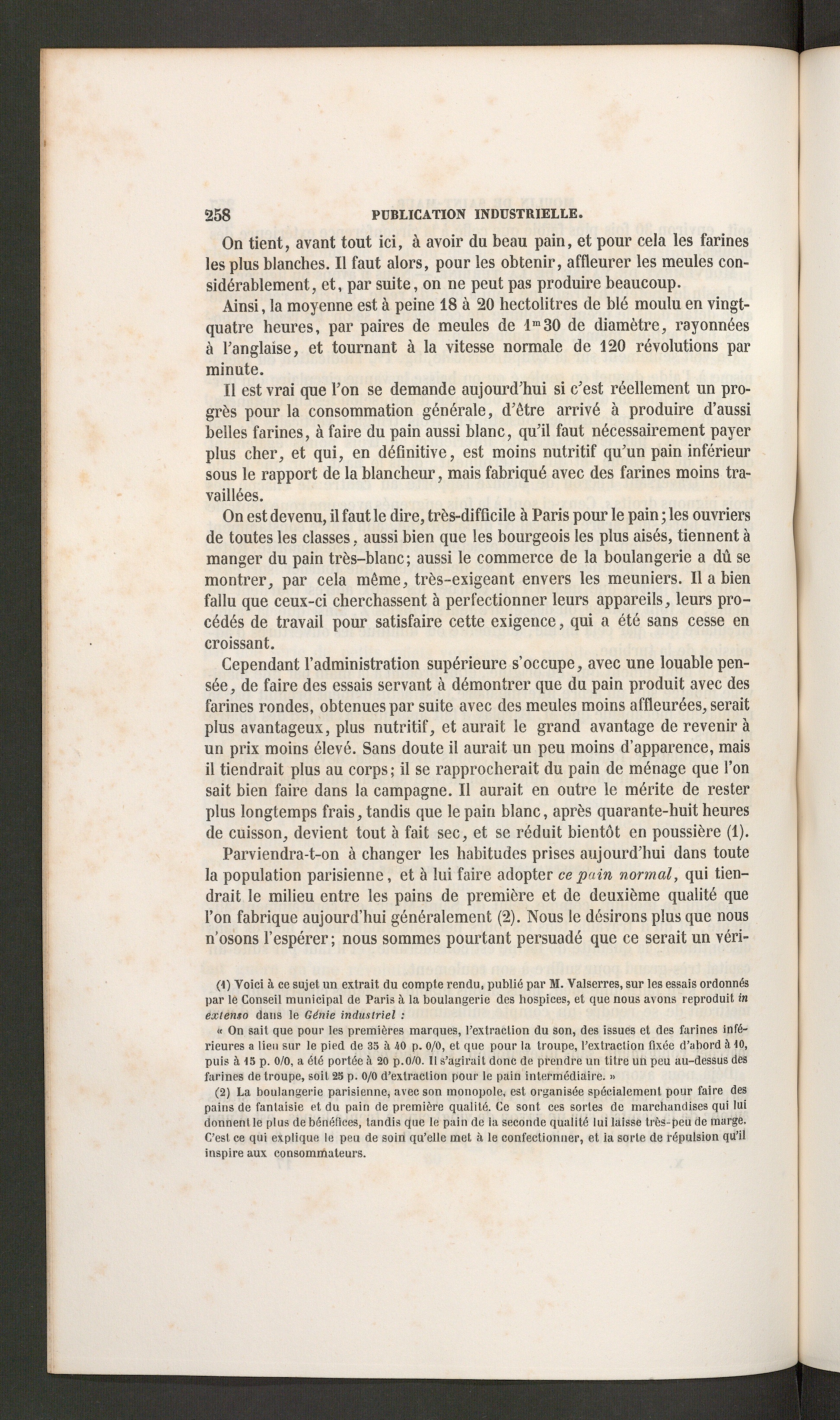 (1) Voici à ce sujet un extrait du compte rendu, publié par M. Vaiserres, sur les essais ordonnéspar le Conseil municipal de Paris à la boulangerie des hospices, et que nous ayons reproduit inextenso dans le Génie industriel :
