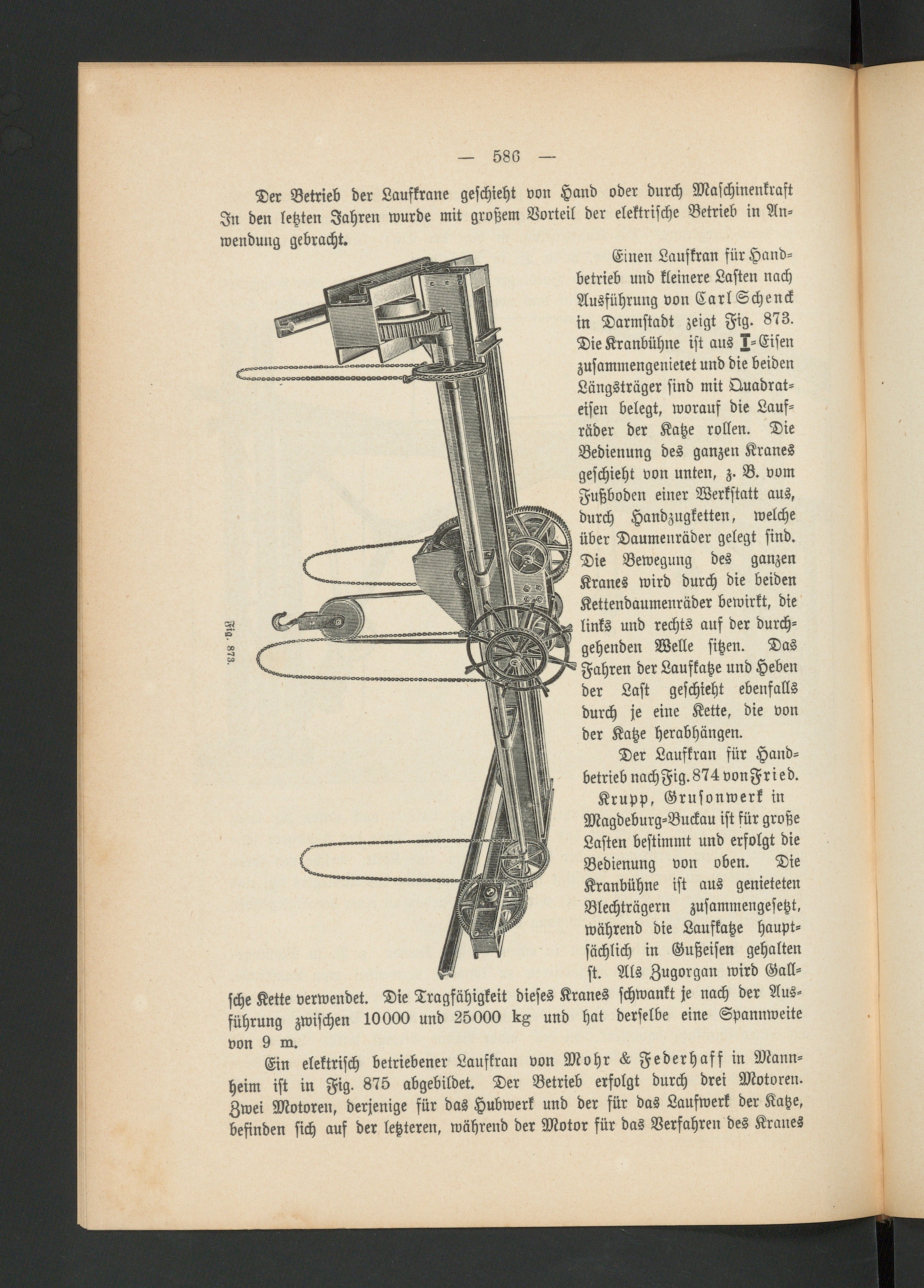 Der Laufkran für Hand-betrieb nachFig.874 vonFried.
