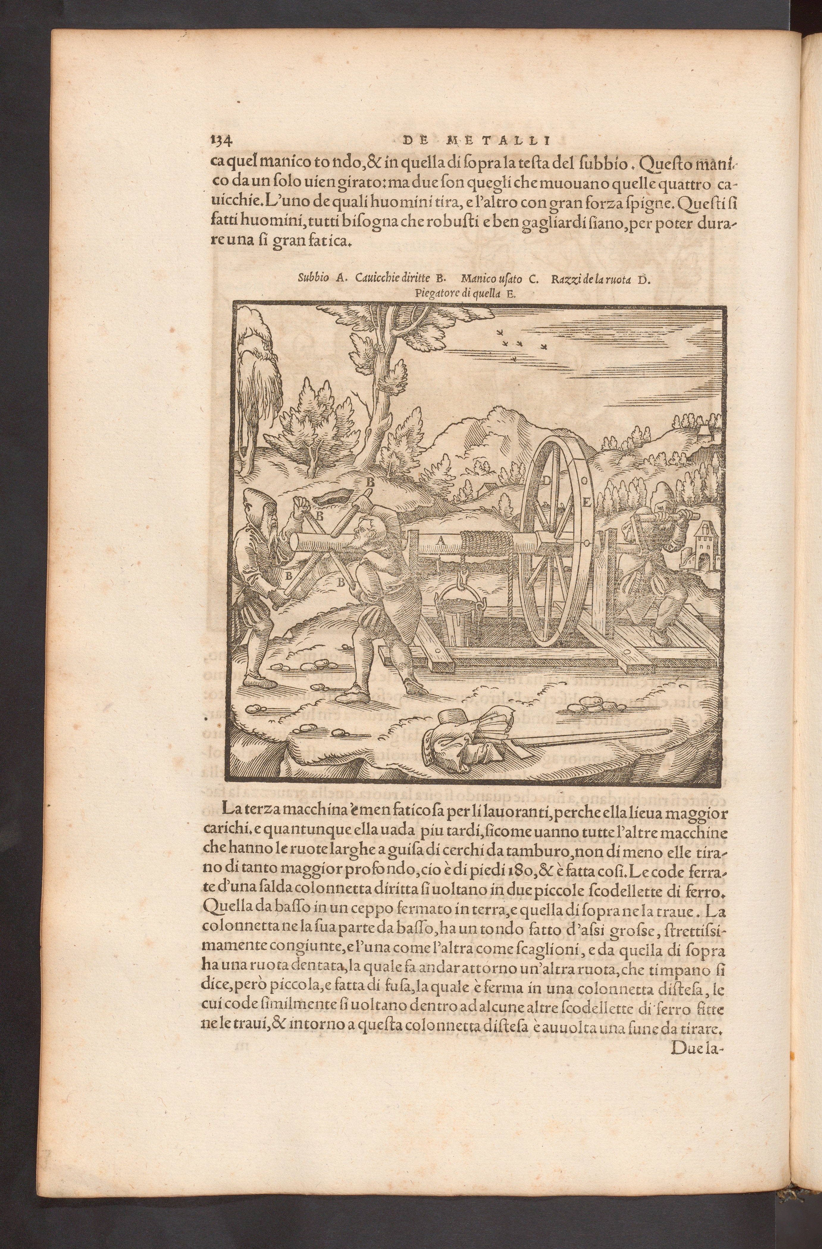 Opera di Giorgio Agricola De l'arte de metalli partita in XII. libri : ne qvali si descrivano tvtte le sorti, e qualità degli uffizij, degli strumenti, delle macchine, e di tutte l'altre cose attenenti a cotal arte ...