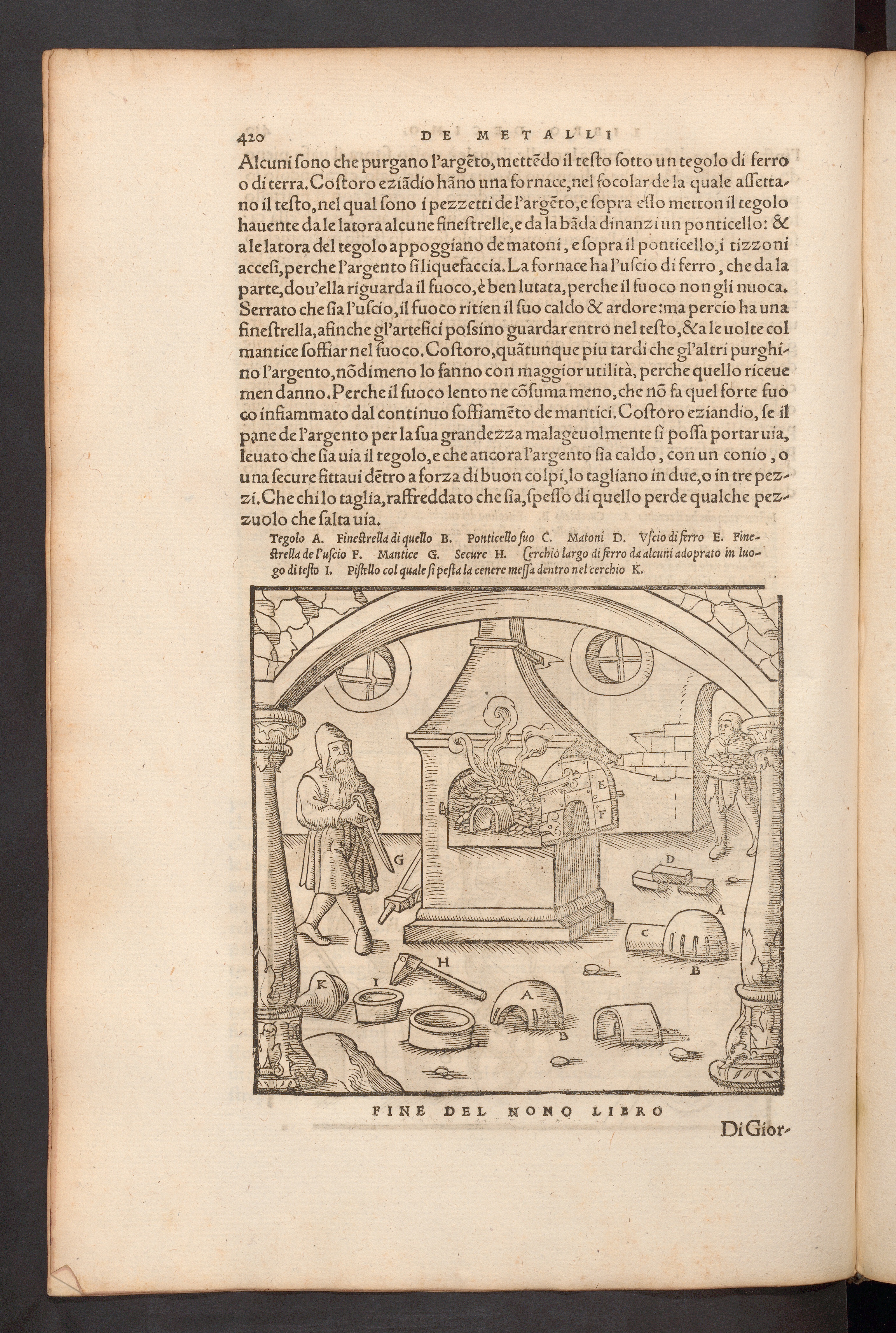 Opera di Giorgio Agricola De l'arte de metalli partita in XII. libri : ne qvali si descrivano tvtte le sorti, e qualità degli uffizij, degli strumenti, delle macchine, e di tutte l'altre cose attenenti a cotal arte ...