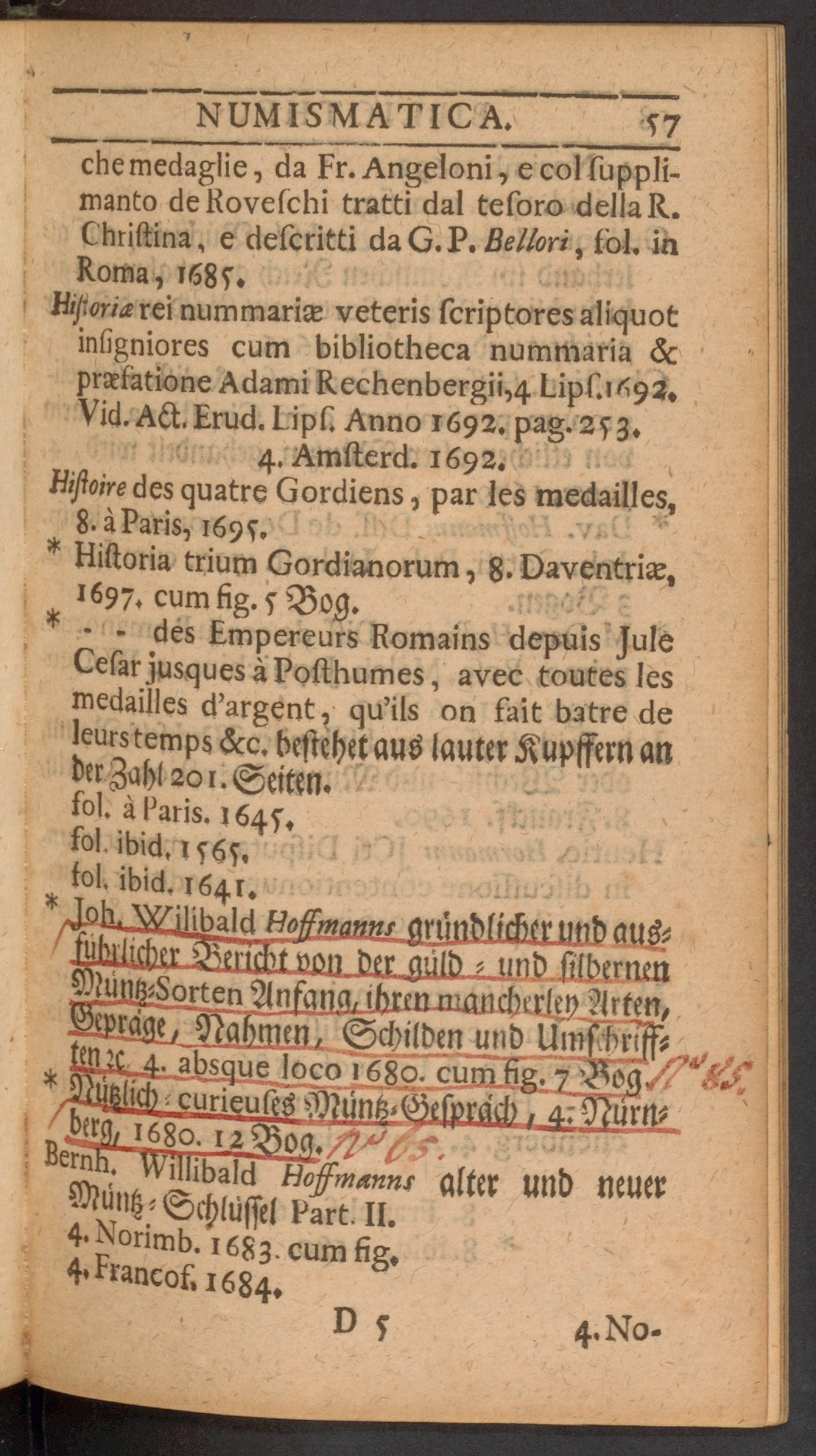 Bibliotheca Nvmismatica oder Verzeichniß der meisten Schrifften, So von Müntz-Wesen[...]