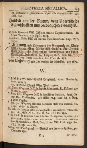 Jacob Leupolds Prodromus Bibliothecae Metallicae Oder Verzeichnis der meisten Schrifften, so von Dingen die Ad Regnum Minerale gezehlet werden, handeln : als da sind: Die Metalle, Mineralien, Salien, Steine Petrifacta, mancherley Erden und in Summa aller Fossilien ... zu wissen nützlich ist