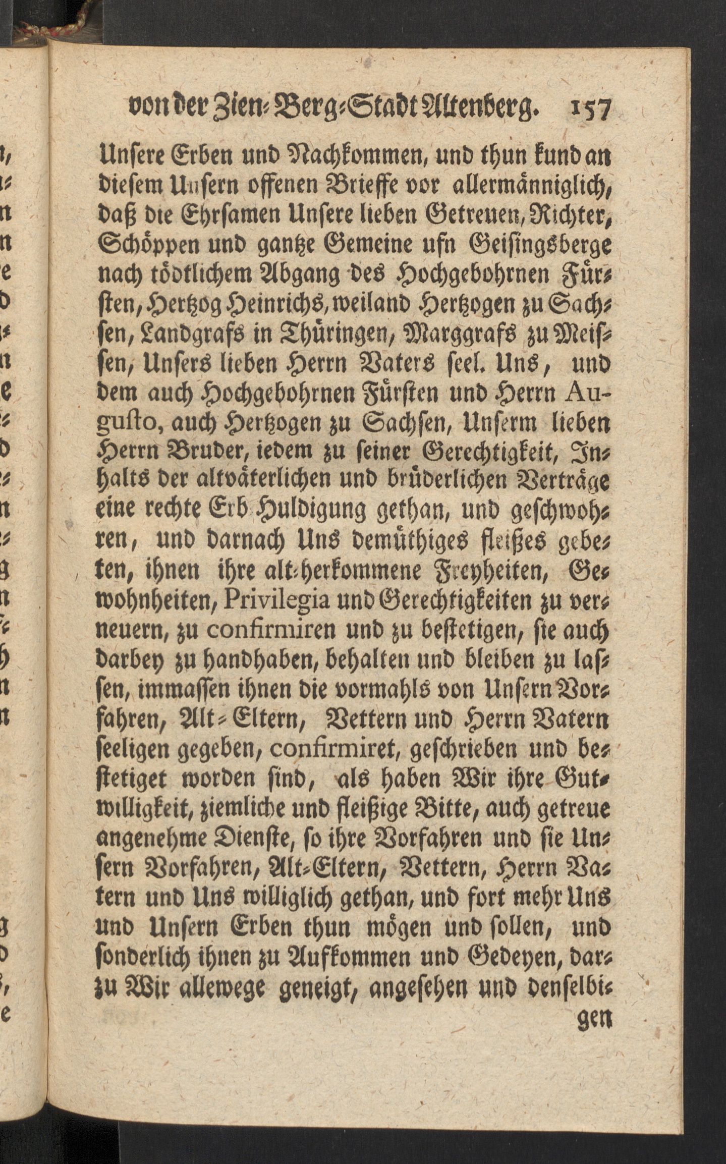 Umständliche Nachricht von der Churfl. Sächß. Schrifftsäßigen freyen Zien-Berg-Stadt Altenberg, in Meissen an der Böhmischen Gränze gelegen : nebst dahingehörigen Diplomatibus, und einem Anhange, von den benachbarten Städten und Berg-Oertern / ausgefertiget, und mit nöthigen Reg. vers. von Christoph Meißnern ...