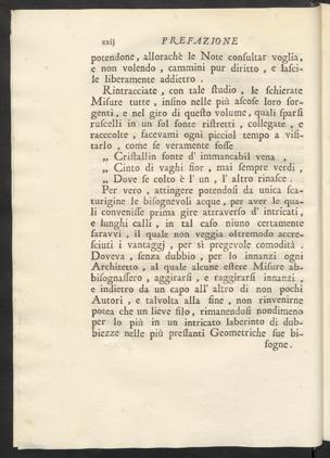 Delle misure d'ogni genere antiche, e moderne : con note letterarie, e fisico-matematiche, a giovamento di qualunque architetto; trattato / di Girolamo Francesco Cristiani