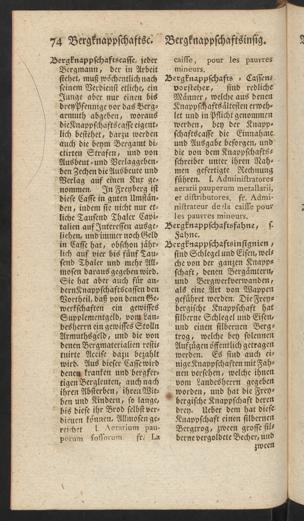 Bergmännisches Wörterbuch, darinnen die deutschen Benennungen und Redensarten erkläret und zugleich die in Schriftstellern befindlichen lateinischen und französischen angezeiget werden