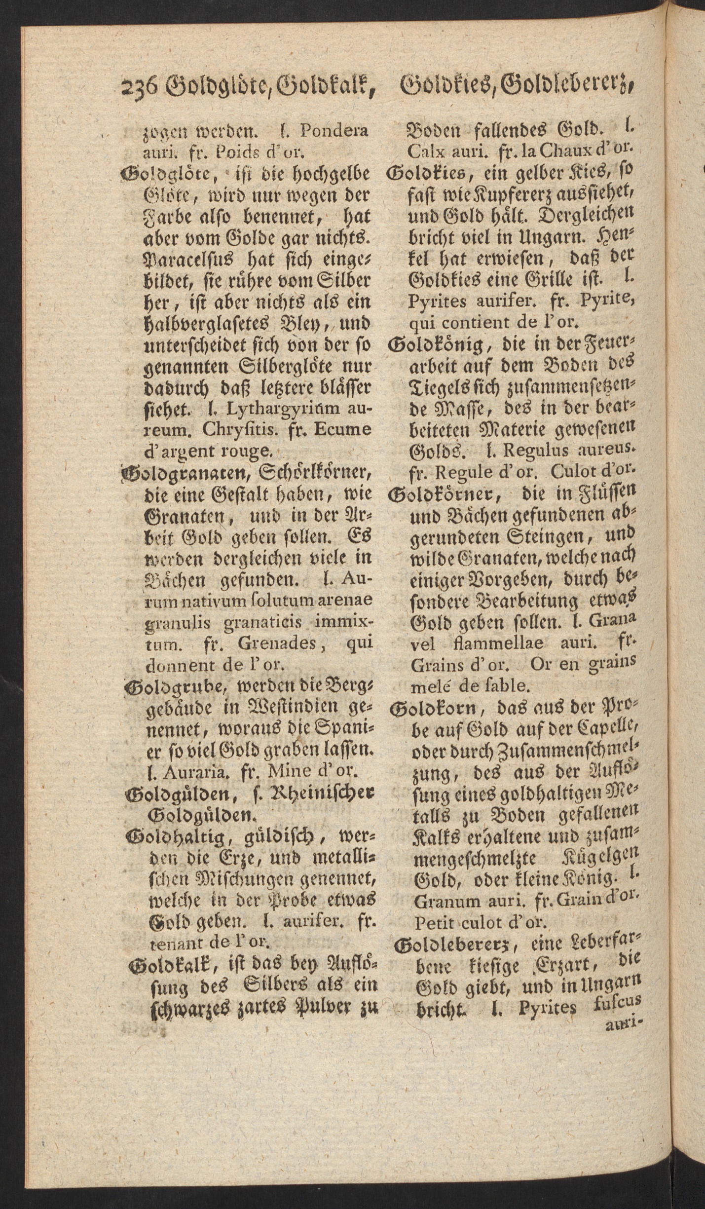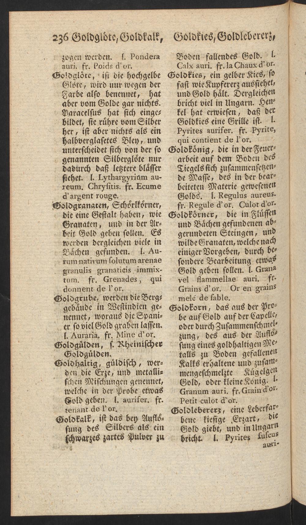 Bergmännisches Wörterbuch, darinnen die deutschen Benennungen und Redensarten erkläret und zugleich die in Schriftstellern befindlichen lateinischen und französischen angezeiget werden