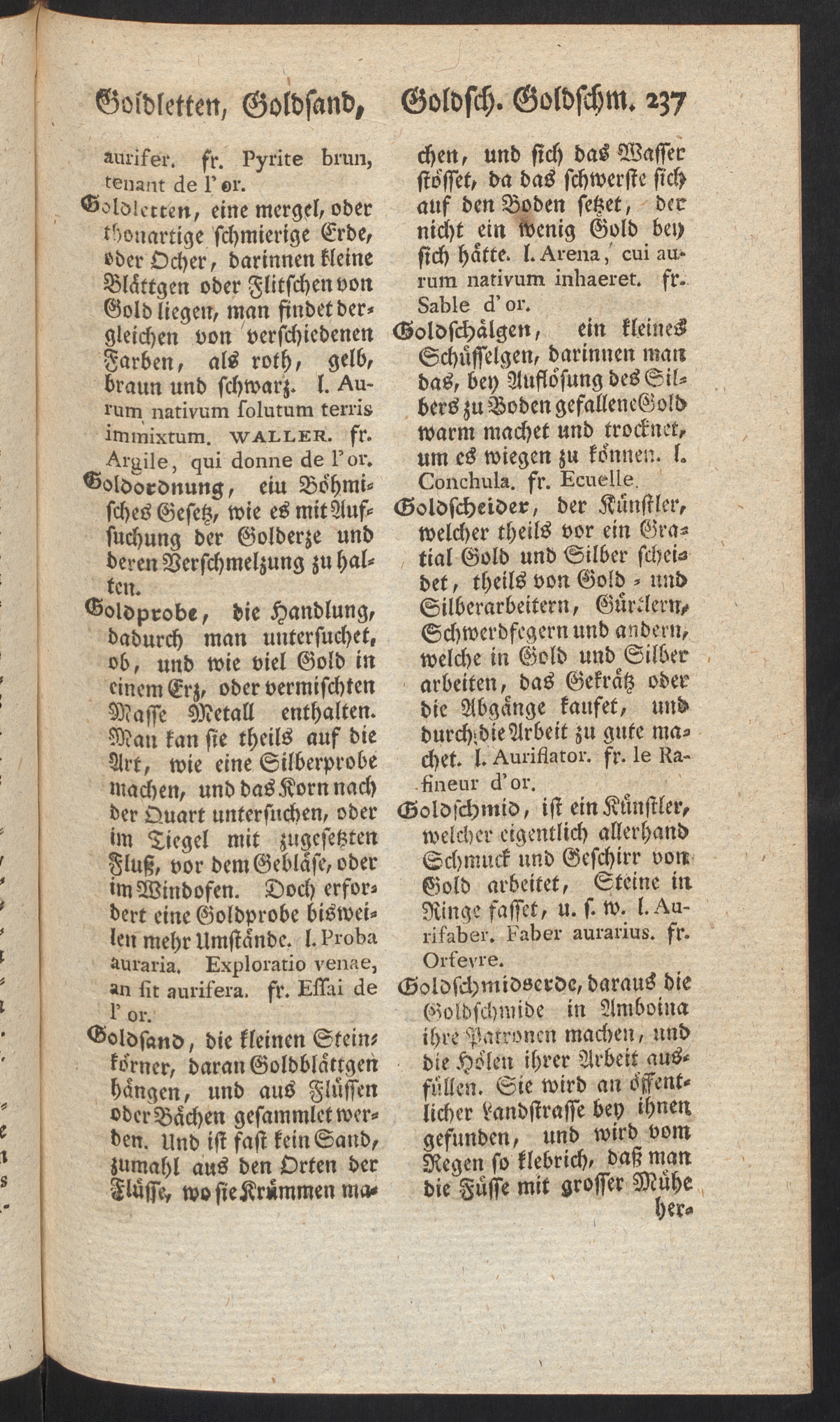 Bergmännisches Wörterbuch, darinnen die deutschen Benennungen und Redensarten erkläret und zugleich die in Schriftstellern befindlichen lateinischen und französischen angezeiget werden