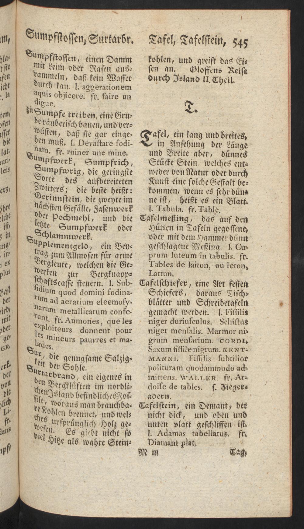 Bergmännisches Wörterbuch, darinnen die deutschen Benennungen und Redensarten erkläret und zugleich die in Schriftstellern befindlichen lateinischen und französischen angezeiget werden