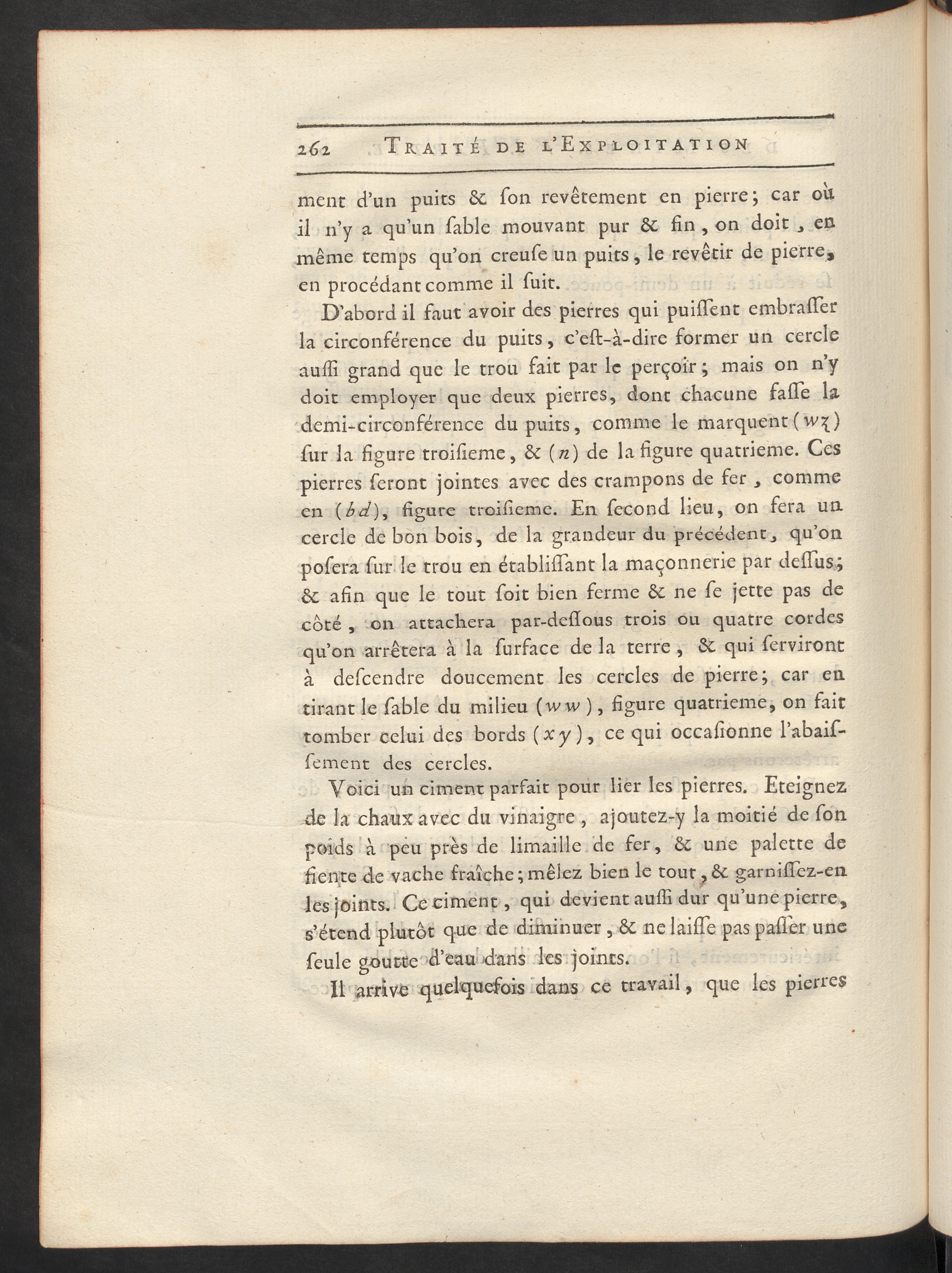 Traité de l'exploitation des mines : Où l'on décrit les situtations des Mines, l'art d'entailler la roche & la substance des filons, de former les puits & les galeries, de procurer de l'air aux souterrains, d'en vuider les eaux, d'élever les roches & les mines au jour, & de percer la terre; avec un traité particulier sur la préparation et le lavage des mines / le tout traduit de l'allemand par M. Monnet