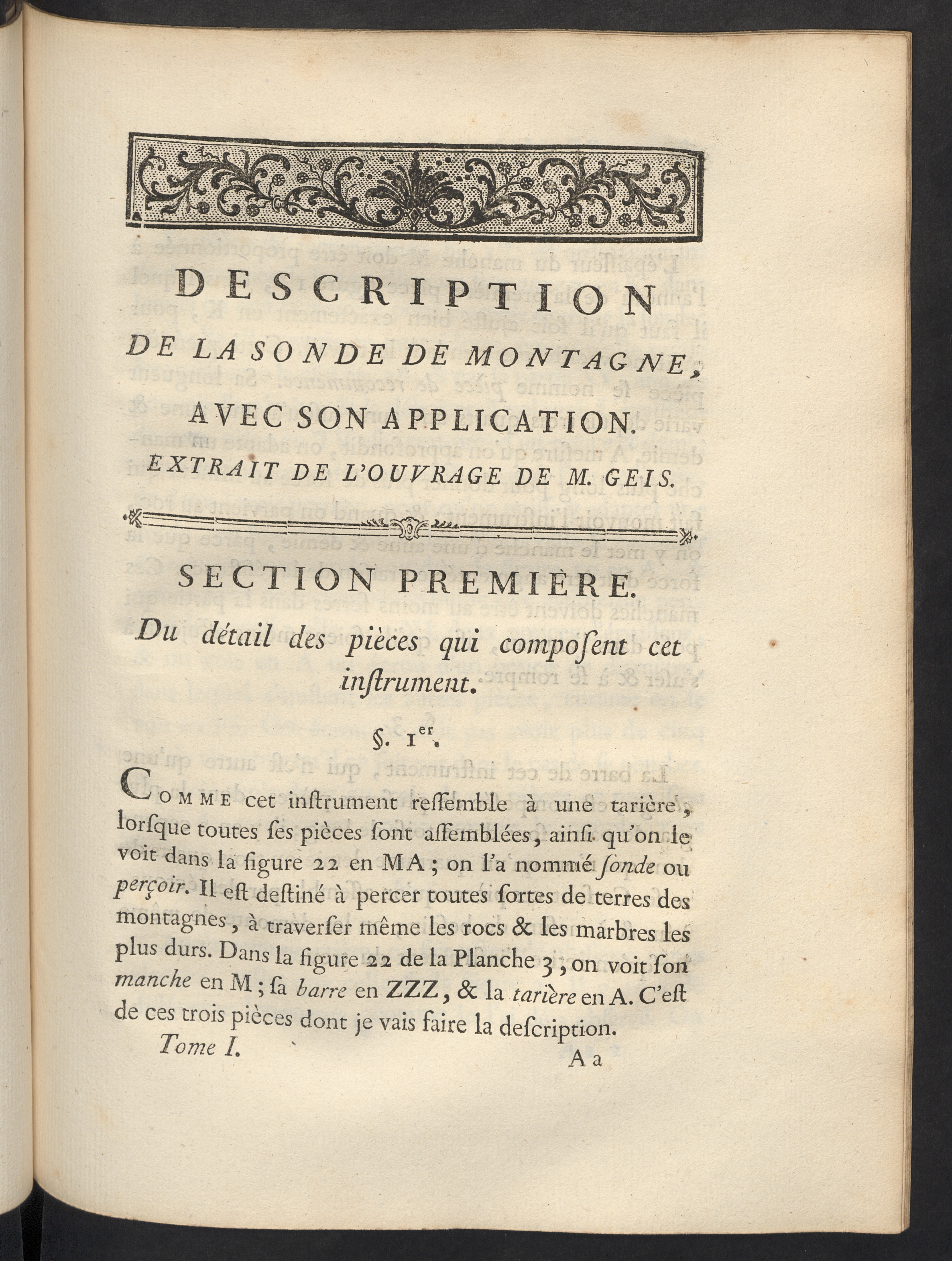 Section première. Du détail des pièces qui composent cet instrument.