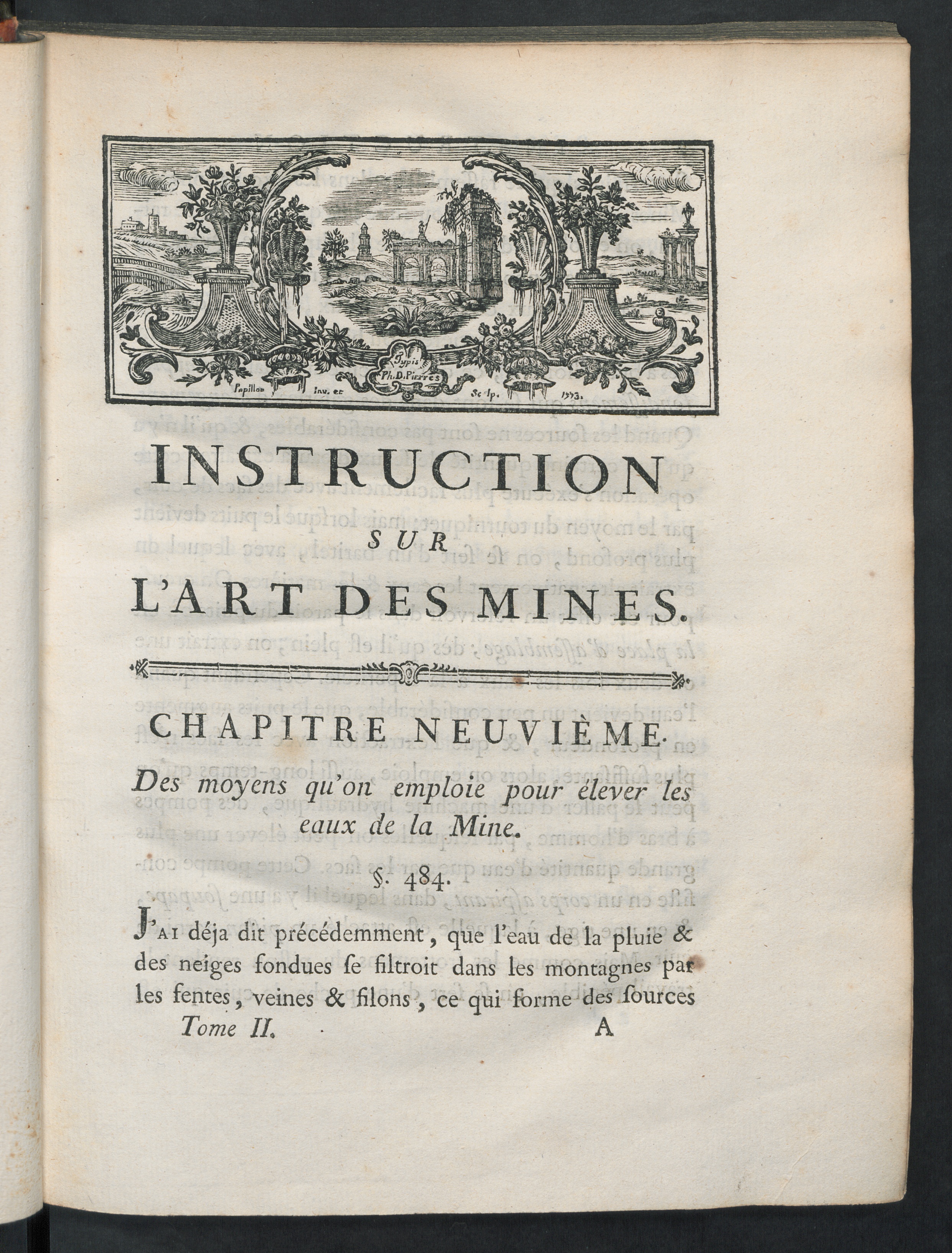 Chapitre neuvième. Des moyens qu' on emploie pour élever les eaux de la mine.