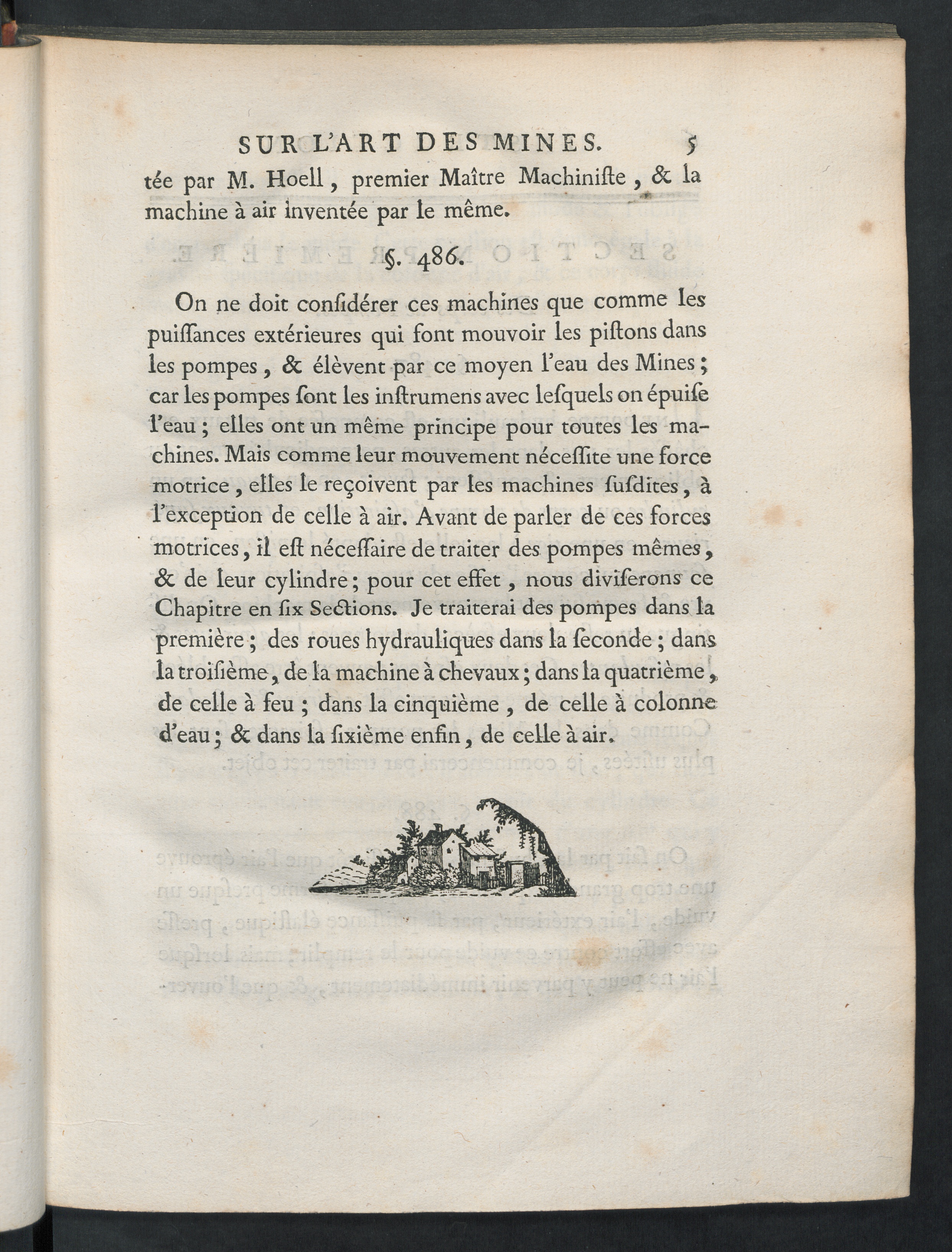 Chapitre neuvième. Des moyens qu' on emploie pour élever les eaux de la mine.