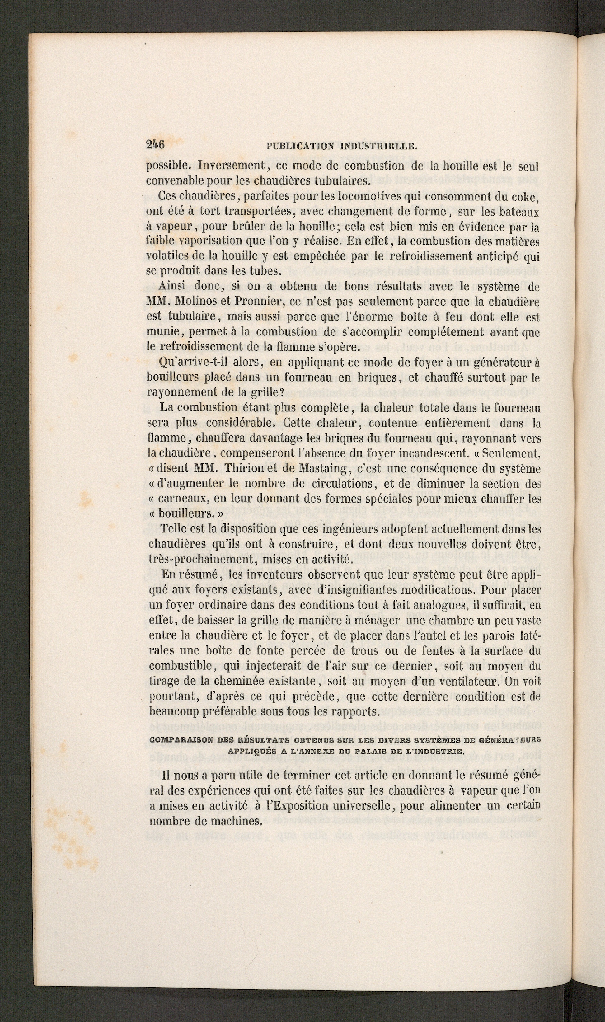 Chaudière tubulaire avec foyer fumivore a double courant d'air forcé par MM. L. Molinos[...]