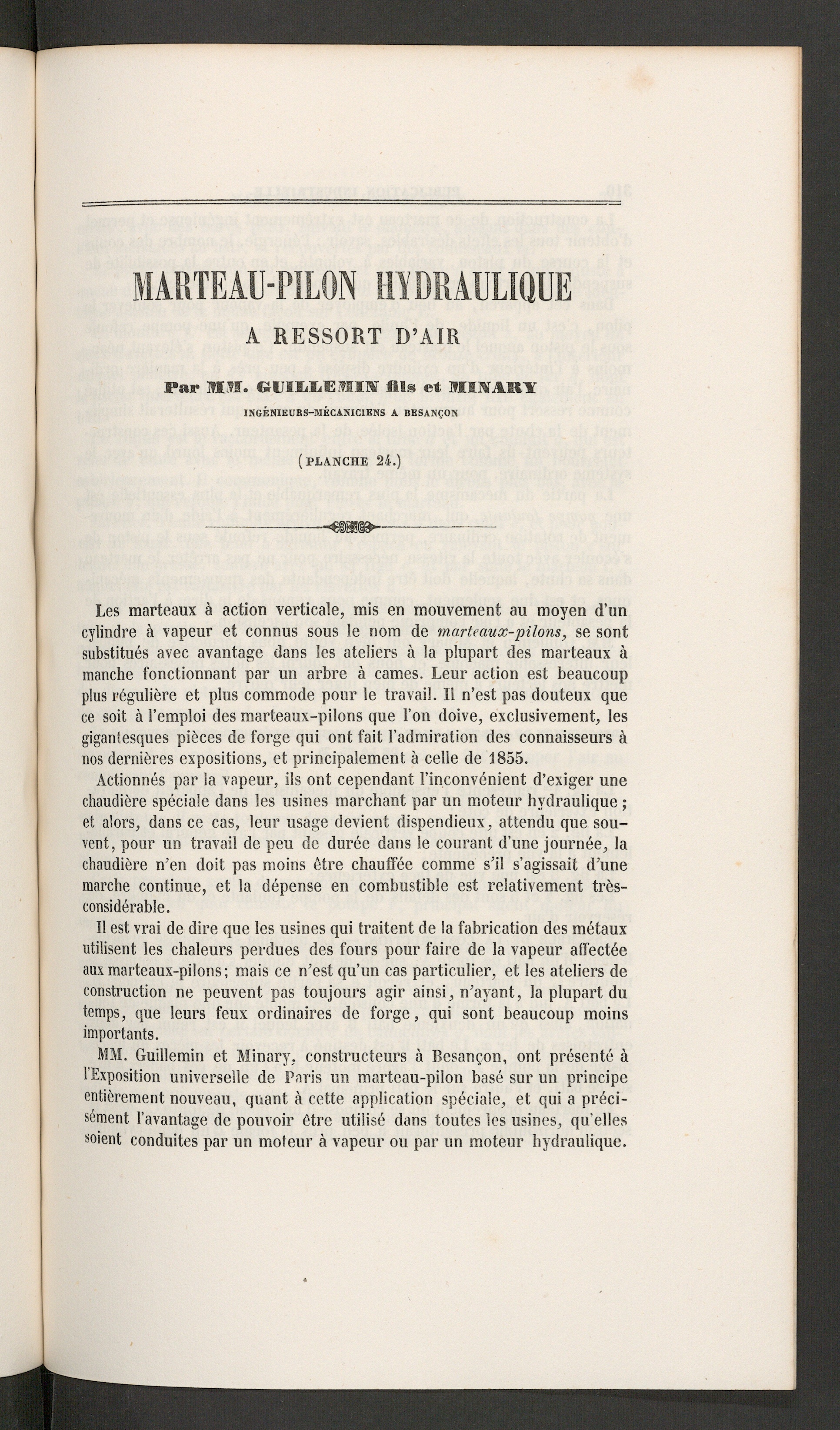 Marteau-pilon hydraulique a ressort d'air par MM. Guillemin fils et minary [...][...]