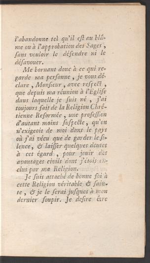 Lettre de J.J. Rousseau à Monsieur de Voltaire
