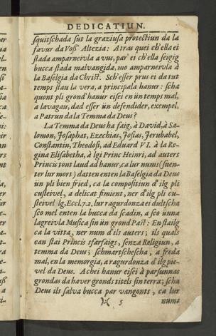 La Lemma da Dem ha faig, d David,d Sa-lomon, J-efaphat, Ezechiasfiofiasßerubabel,Conßantin, Theodofi, ad Eduard VI. d la Re-gina Elifiabetha, d Igi Princ Heinri, ad autersPrincis tont laud ad hanur,ca lur nums(fiten*ter lur mort) datten enten laBafilgia da Demün pli bienfried, ca la compofitiun d ilg plicußeivel , a delicat fimient, ner cttlg pli cu-ßeivel IgiEccl.f.z. lur ragurdonzaei dultfehafio mel enten la bucca da fiadin, a fio ünnalagreivla Muficafin ün grond Past: Enftailgca la vitta^ ner num d’ils auters \ ils qualsean fiai Pnncis sfiarfaigs , fienza Religtun , atemma da Dem ; fihmartfihefeha , a fiedamal, en la memorgia,aragurdonza dtlgpie-vel da Dem. A chei hanur eifii d parfimnasgrondas da havergronds titels ßn terra ; fehaDem ils fialva bucca par vangonts , ca lur);( / nums