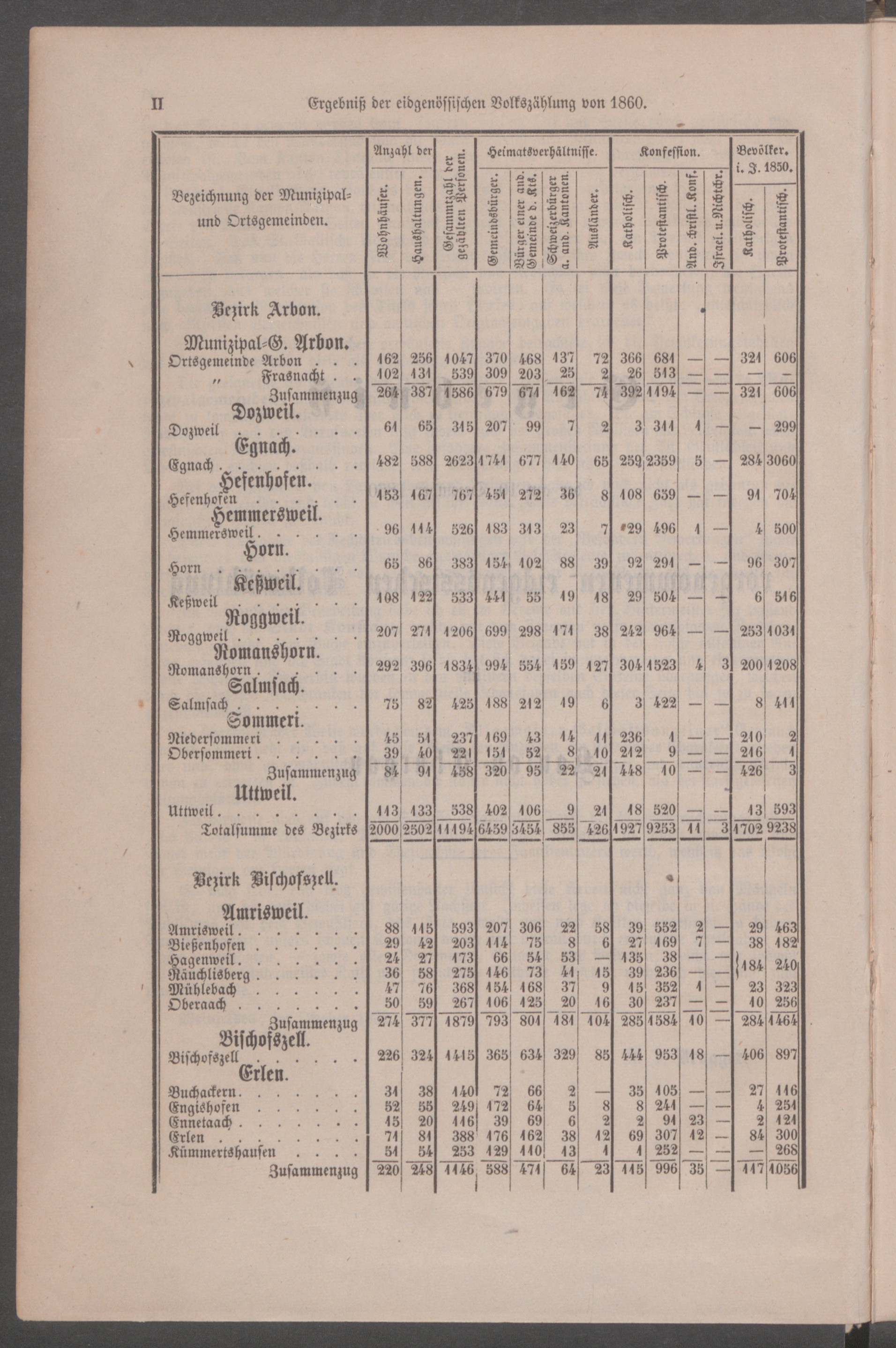 Is Ergebniß der eidgenössischen Volkszählung von 1860.