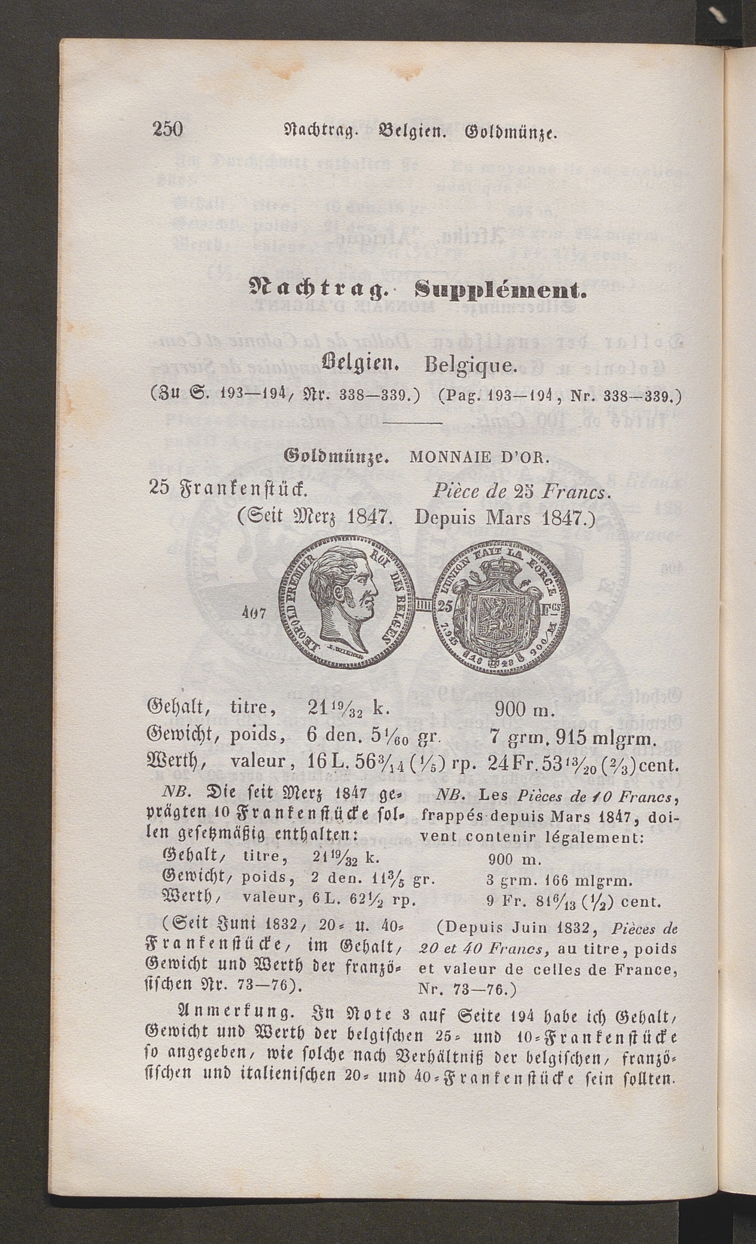 Münzbuch oder Abbildung der kursirenden Geldsorten / : mit genauer Angabe : ihres Gehalts in französischer alter und neuer, und in deutscher Bezeichnungsweise; ihres Gewichts in französischen Grän und Grammen, und ihres Werths in französischer und in alter Schweizerwährung, im deutschen 20 und 24 1/2 Gulden- und 14 Thalerfuss ; Nebst einer Übersicht der wichtigsten Rechungsmünzen / nach den zuverlässigsten ältern und neuern Quellen bearb. von Xaver Frey ; fortges. von C. Blaser