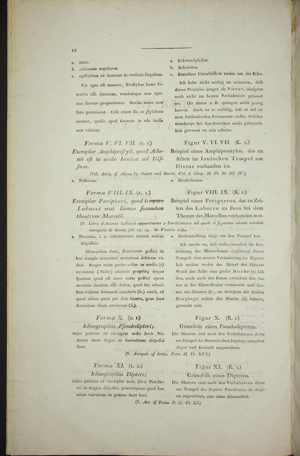 Formae ad explicandos M. Vitruvii Pollionis decem libros de architectura : maximam partem ad ipsa antiqua monumenta delineatae cum brevibus explicationibus Latinis et Germanicis / Kupfer zu Vitruvs zehn Büchern von der Baukunst : mehrentheils nach antiken Denkmälern gezeichnet mit kurzen lateinischen und deutschen Erklärungen / cura Augusti Rode Dessauiensis = von August Rode