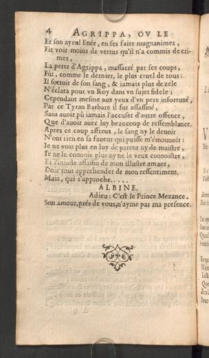 Agrippa Roy D’Albe, Ov Le Favx Tiberinvs : Dedié Av Roy / [Philippe Quinault] ; Auec Priuilege Du Roy.
