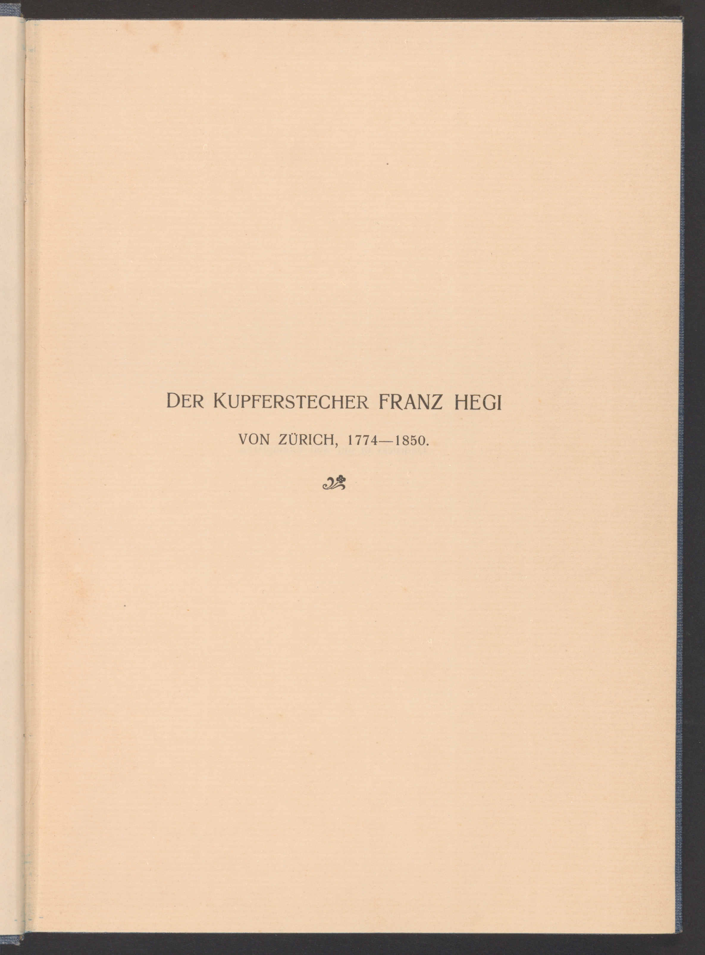 Der Kupferstecher Franz Hegi von Zürich, 1774-1850 : sein Leben und seine Werke : beschreibendes Verzeichnis seiner sämtlichen Kupferstiche / bearb. von Heinrich Appenzeller