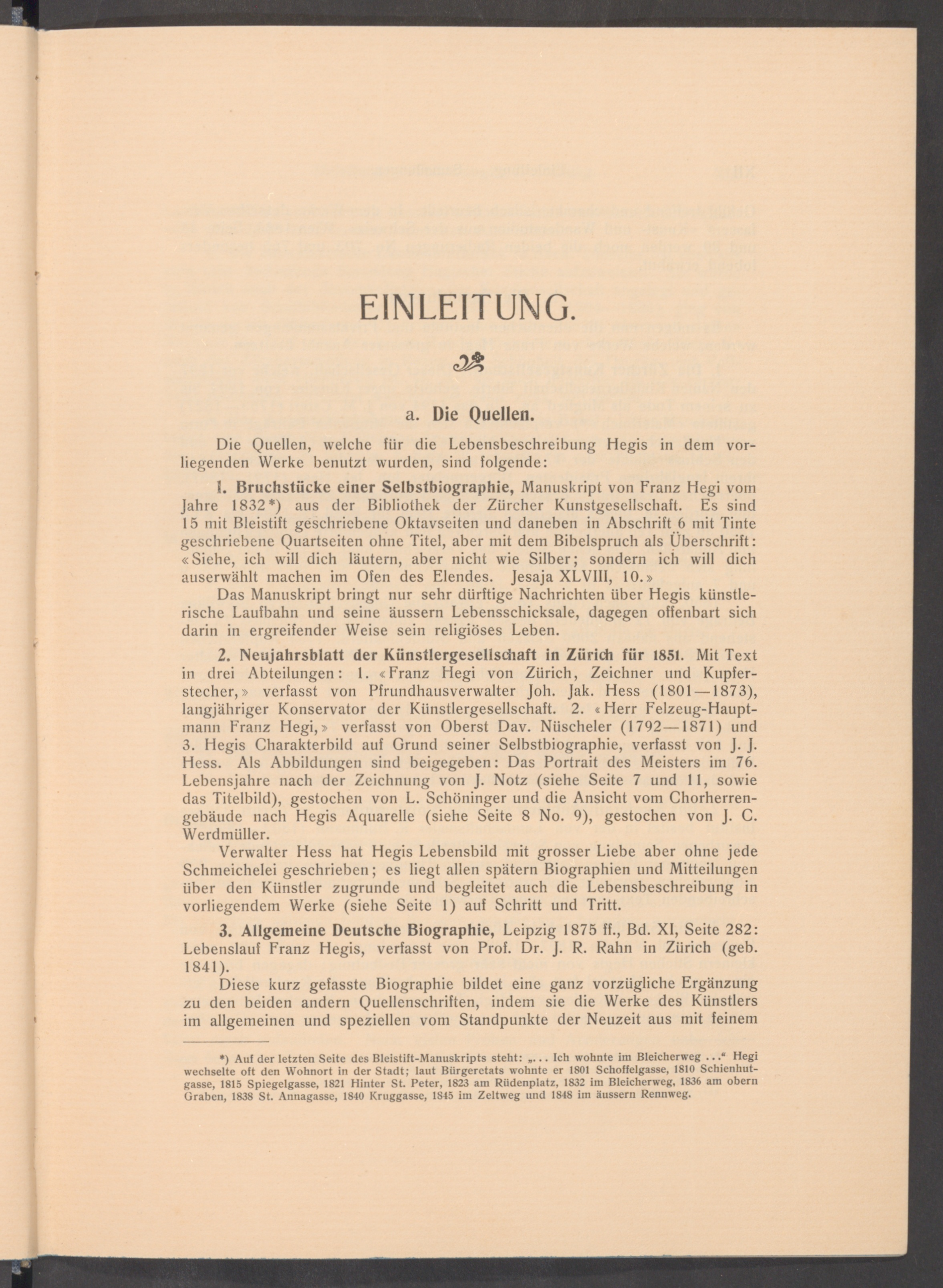 Verwalter Hess hat Hegis Lebensbild mit grosser Liebe aber ohne jedeSchmeichelei geschrieben; es liegt allen spätem Biographien und Mitteilungenüber den Künstler zugrunde und begleitet auch die Lebensbeschreibung invorliegendem Werke (siehe Seite 1) auf Schritt und Tritt.