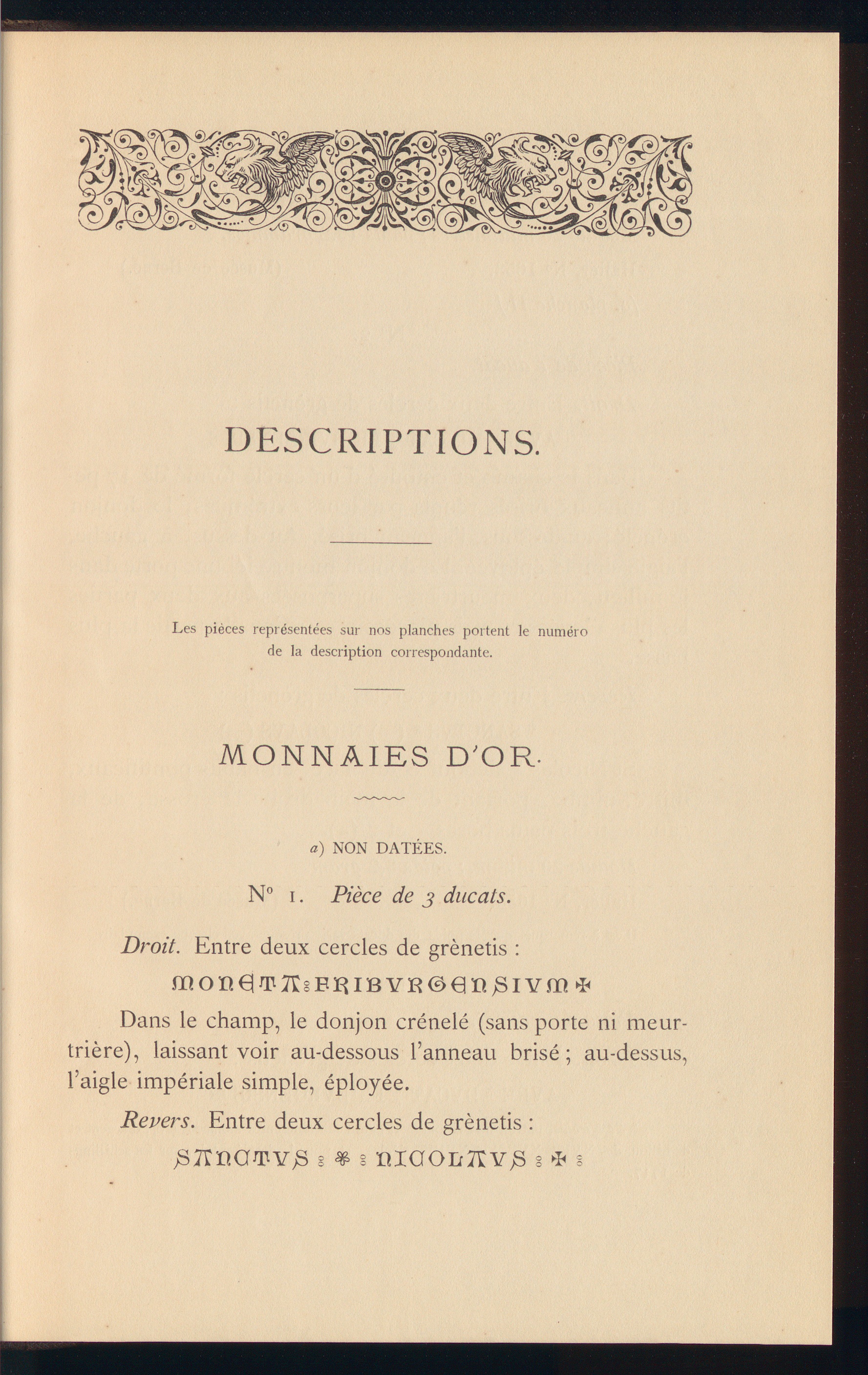 Essai sur les monnaies d'or et d'argent de Fribourg