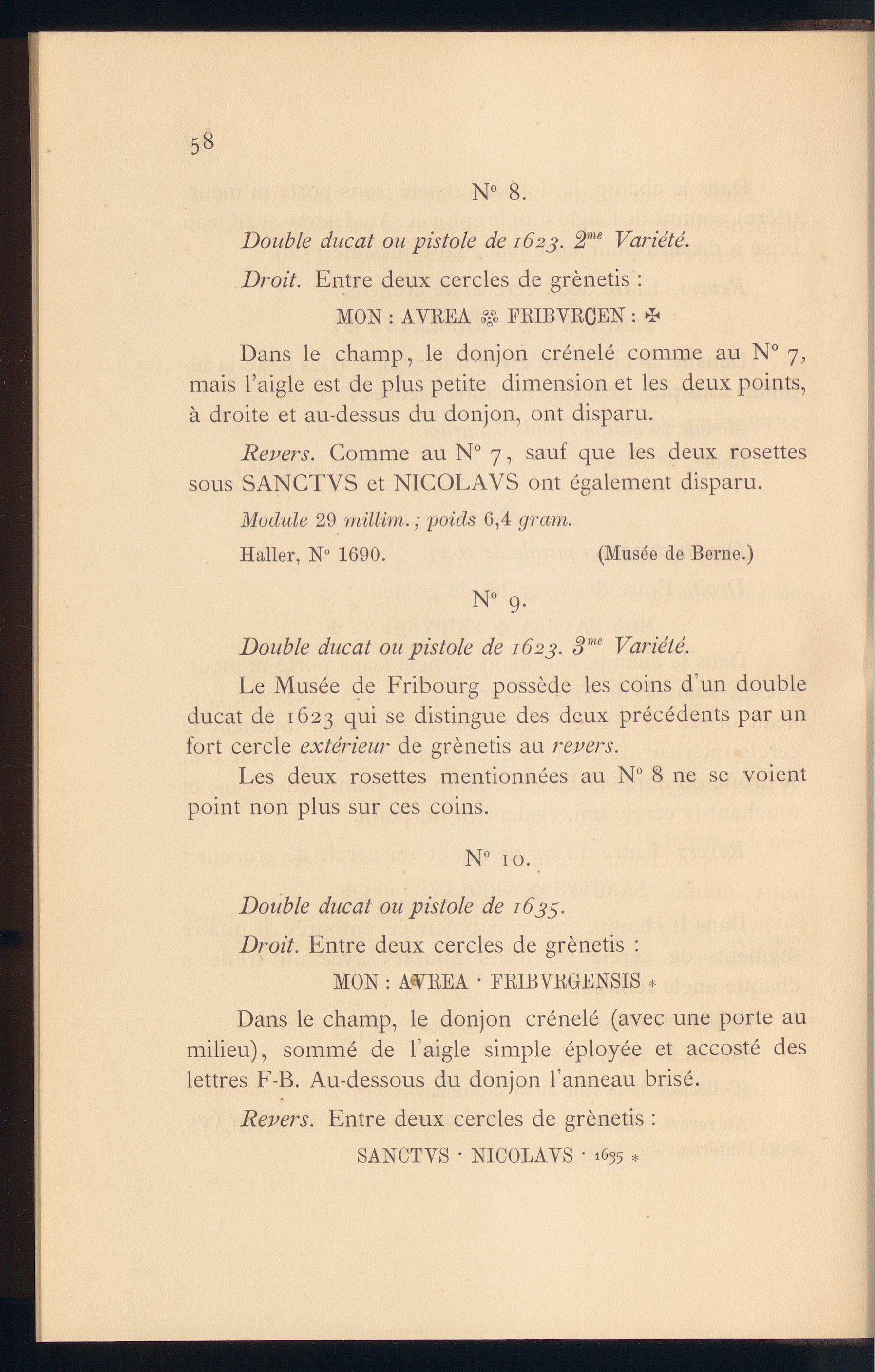 Essai sur les monnaies d'or et d'argent de Fribourg / Antonin Henseler