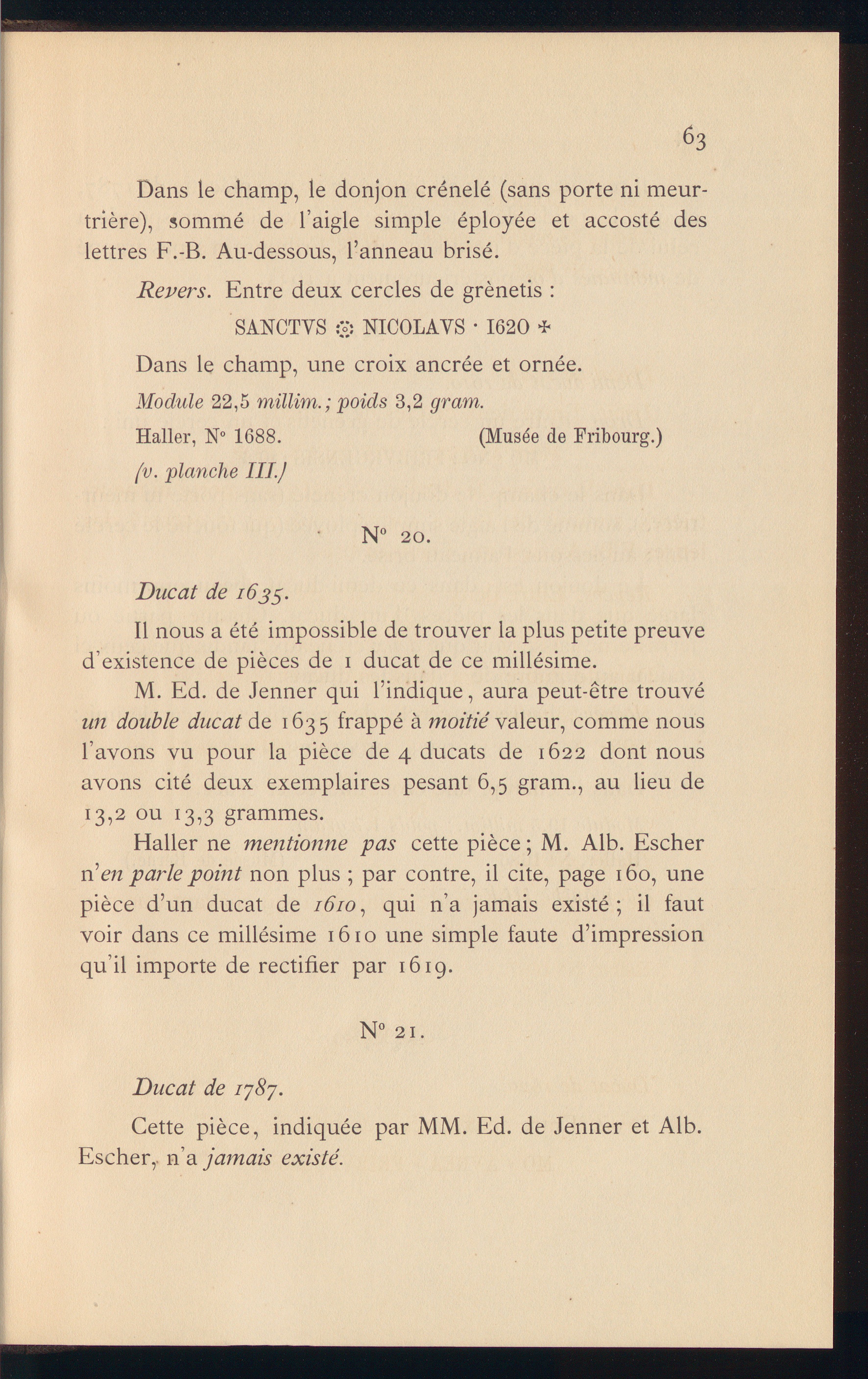 Essai sur les monnaies d'or et d'argent de Fribourg / Antonin Henseler