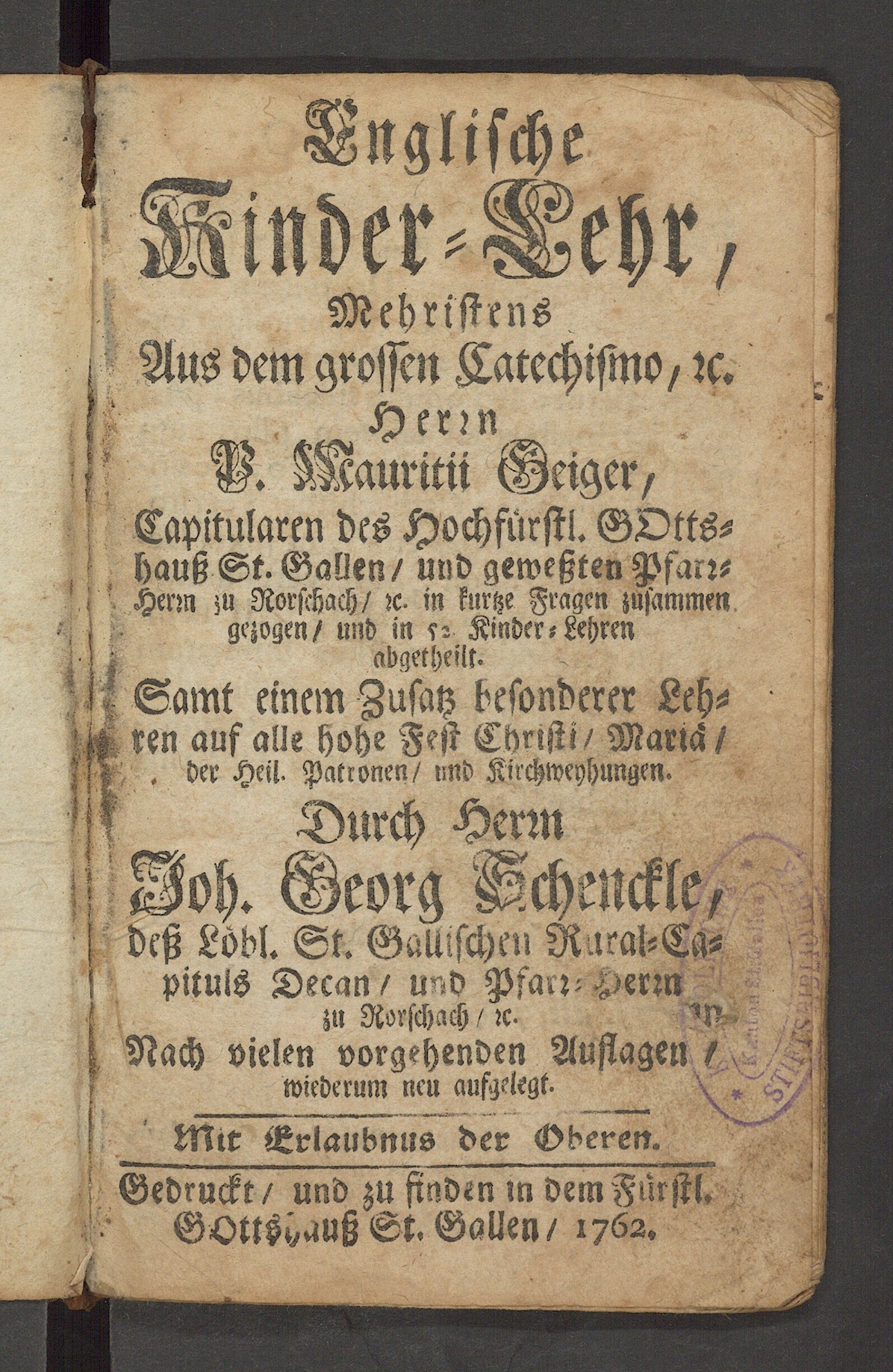 Gedruckt/ und zu finden m demFürstl.GOtt§i,auß St. Gallen / 1762.