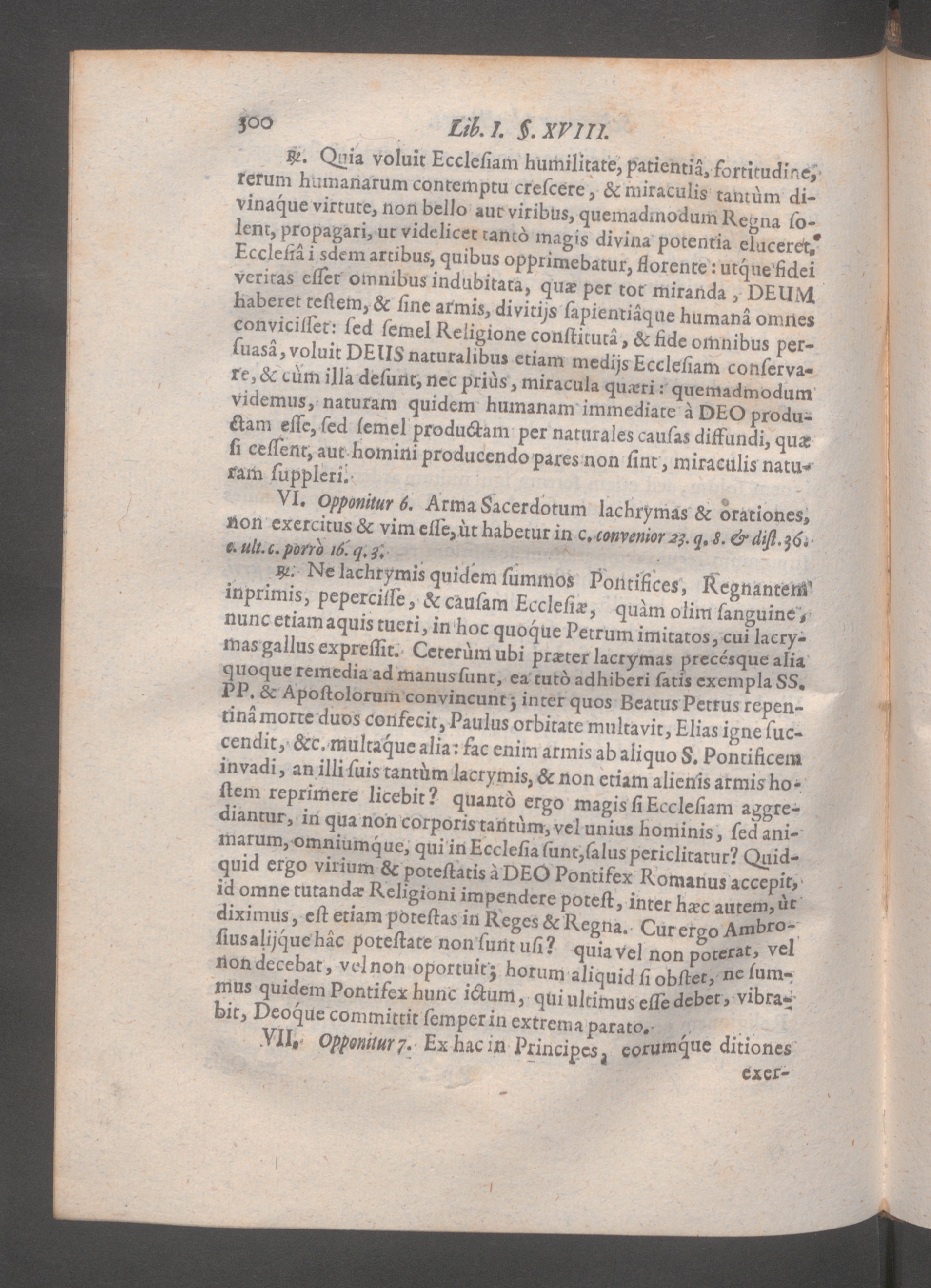 VI. Opponitur 6. Arma Sacerdotum lachrymas & orationes,»on exercitus & vim elfe,üt habetur in c. convemor 1$. q. 8. & diß.tfi-c. ult. c. porio 16. q, s,
